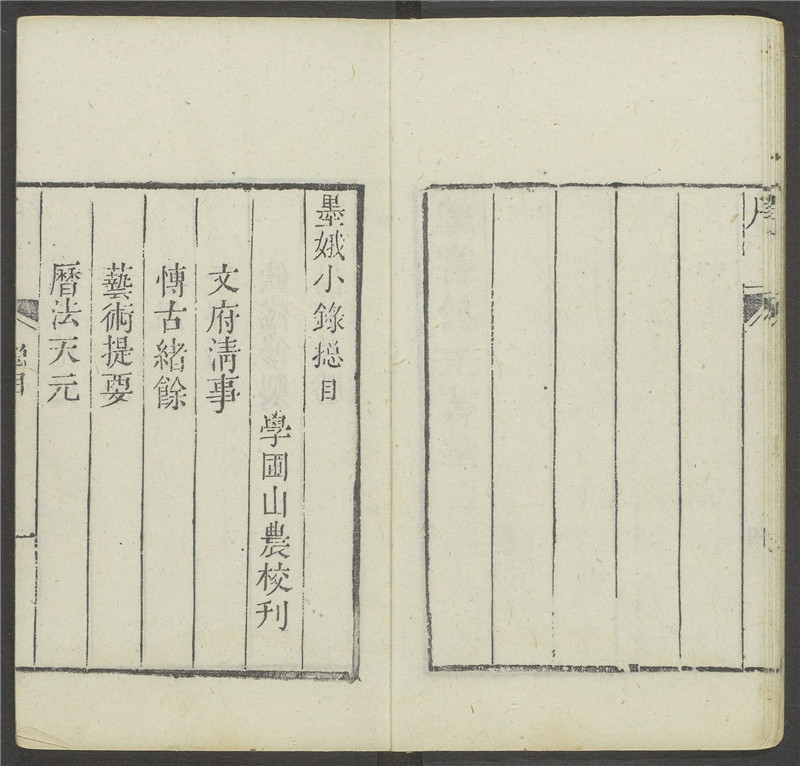 该书十四卷,卷目依次是:文府清事、博古绪余、饮膳集珍、汤茗品胜、医方捷法、艺术戏剧、推测历命、种植怡情、方外修真、房中秘药、丹方烧炼、香谱修制、禽畜宜忌、市语声嗽。从内容来看,卷三、卷四、卷八、卷十三等农学条目,较为实用,有一定科学价值。卷五、卷九、卷十等医学部分,亦多可采之处。卷十四“市语声嗽”,则辑录了大量的当时民间流传的歇后语和江湖切口,为研究方言和曲语保存了不可多得的资料。
