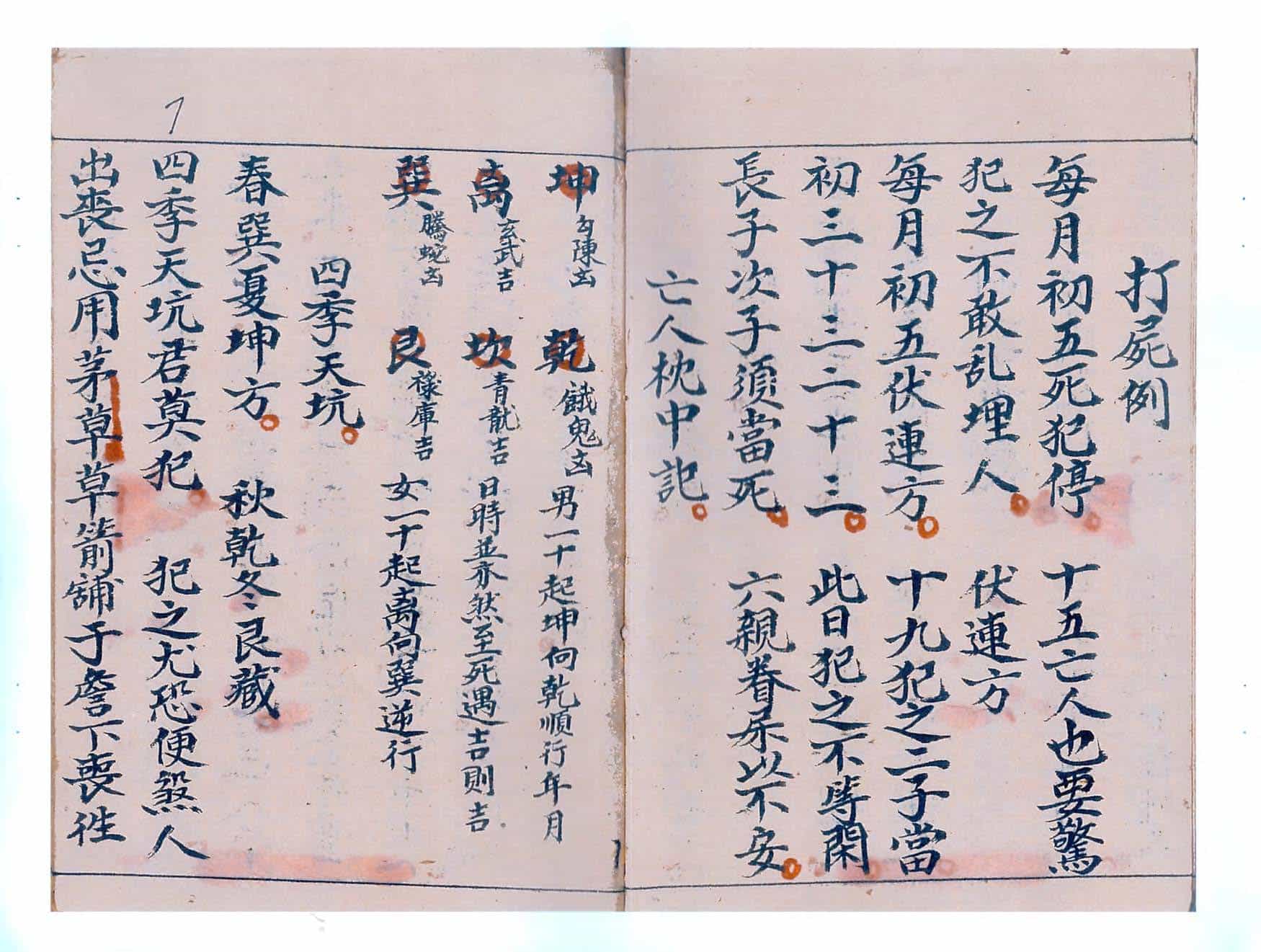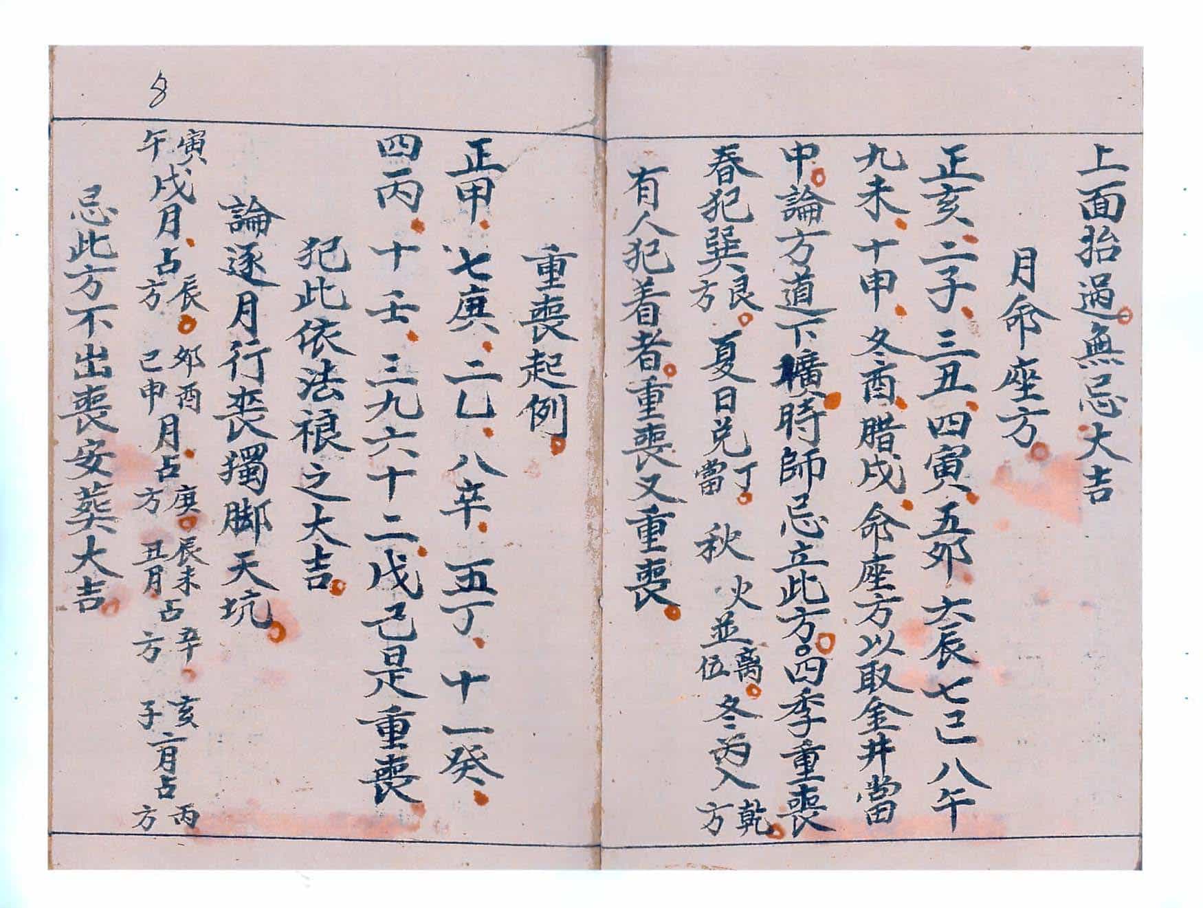 内容包括:起迴煞例,论丧事吉课,冷地空亡诗例,论祖坟安历忌日,逐月天坑,四季天坑,亡人枕中记,安葬三煞方,发丧秘旨,起桃汤秘旨,起丧符,发远丧秘旨,禳重丧秘法,发重丧判日,淹重丧法,掩天法,掩天坑法,压空亡秘旨,又收空法,掩雌雄秘旨,压太阳星秘旨,寄丧秘旨,夏秋二季寄丧法,清宅帖,停丧帖,闭殓判语,寄丧掩臭秘法,寄丧秘符,放丧歌诀,退山家秘旨,压火一宗,九星运遁式等。