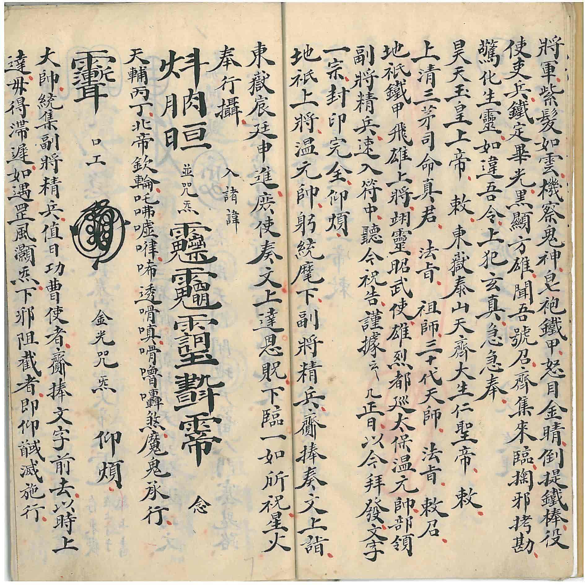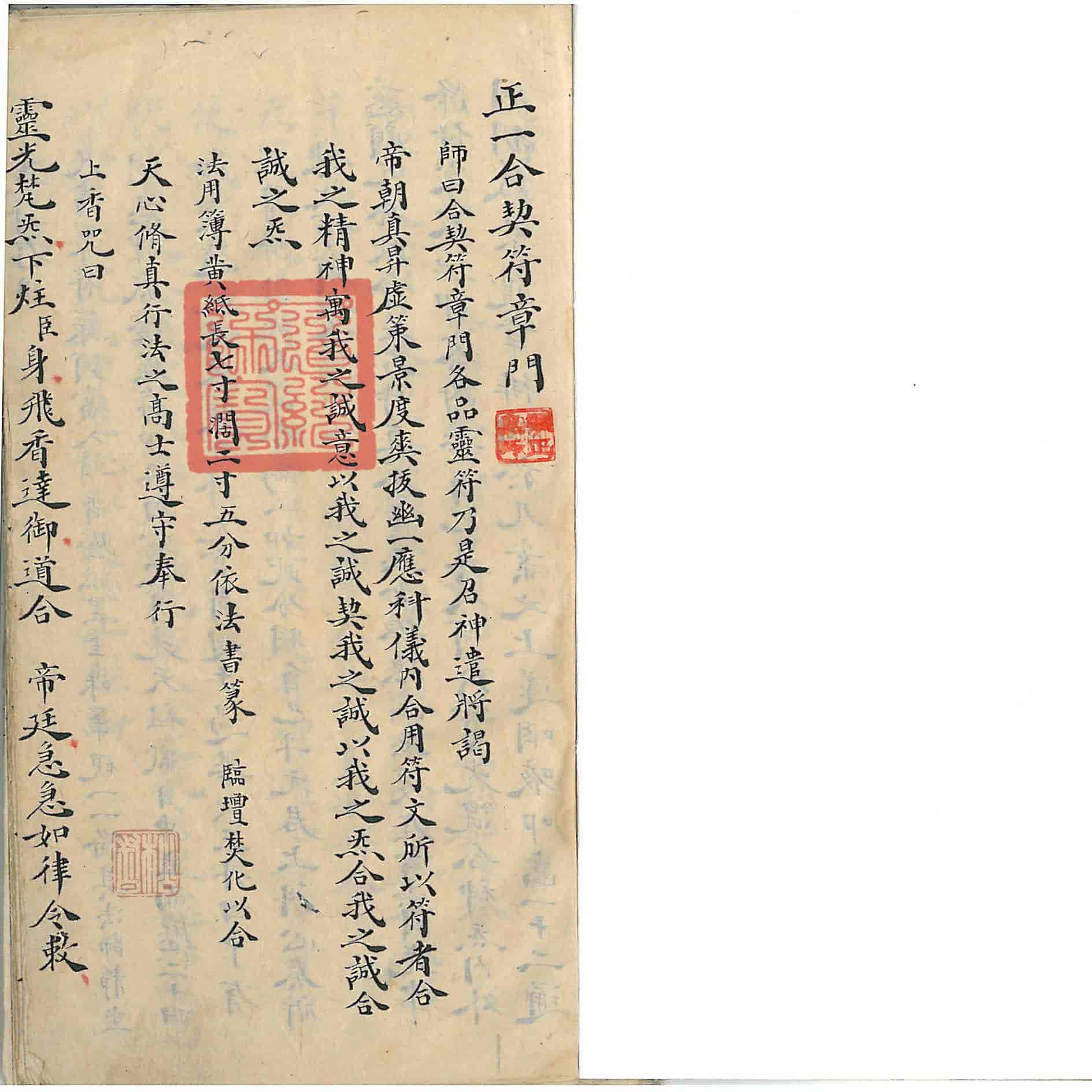 《正一合契符章门》,该套符法传自大光明殿娄近垣真人一脉,珍贵孤本手抄,全本共32个双面,合计64页。