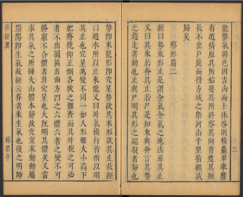 形势十一篇:原势篇、察形篇、怪穴篇、穴病篇、峡论篇、分龙篇、四兽砂水篇、明堂篇、馀气篇、水口篇、望气篇、葬旨一篇。