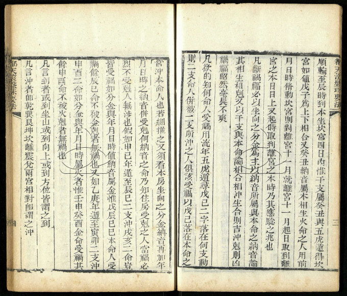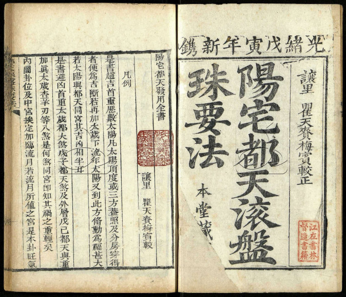 《阳宅都天滚盘珠要法》清光绪四年(1878戊戌年)刻本,[清]瞿天赉撰,又名《阳宅都天发用全书》,被收录于术藏第16卷。相传此书为诸葛亮所著,同治二年夏四月间由聊邑学孔先生重新编排,此书流传比较少,几近绝版。