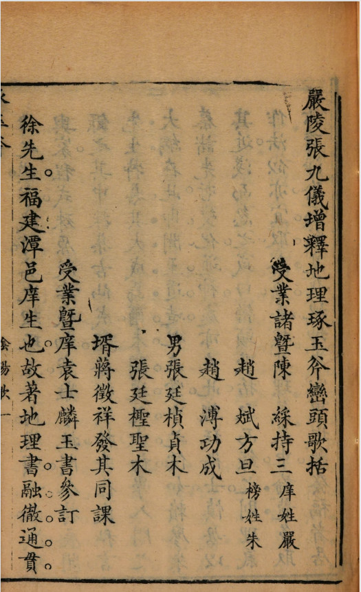 《严陵张九仪增释地理琢玉斧峦头歌括》,被收录于术藏第24卷,[明]徐之镆著,张凤藻增释,袁士麟参订,张九仪释。此版本为道光八年季春月重镌,小酉山房藏版。