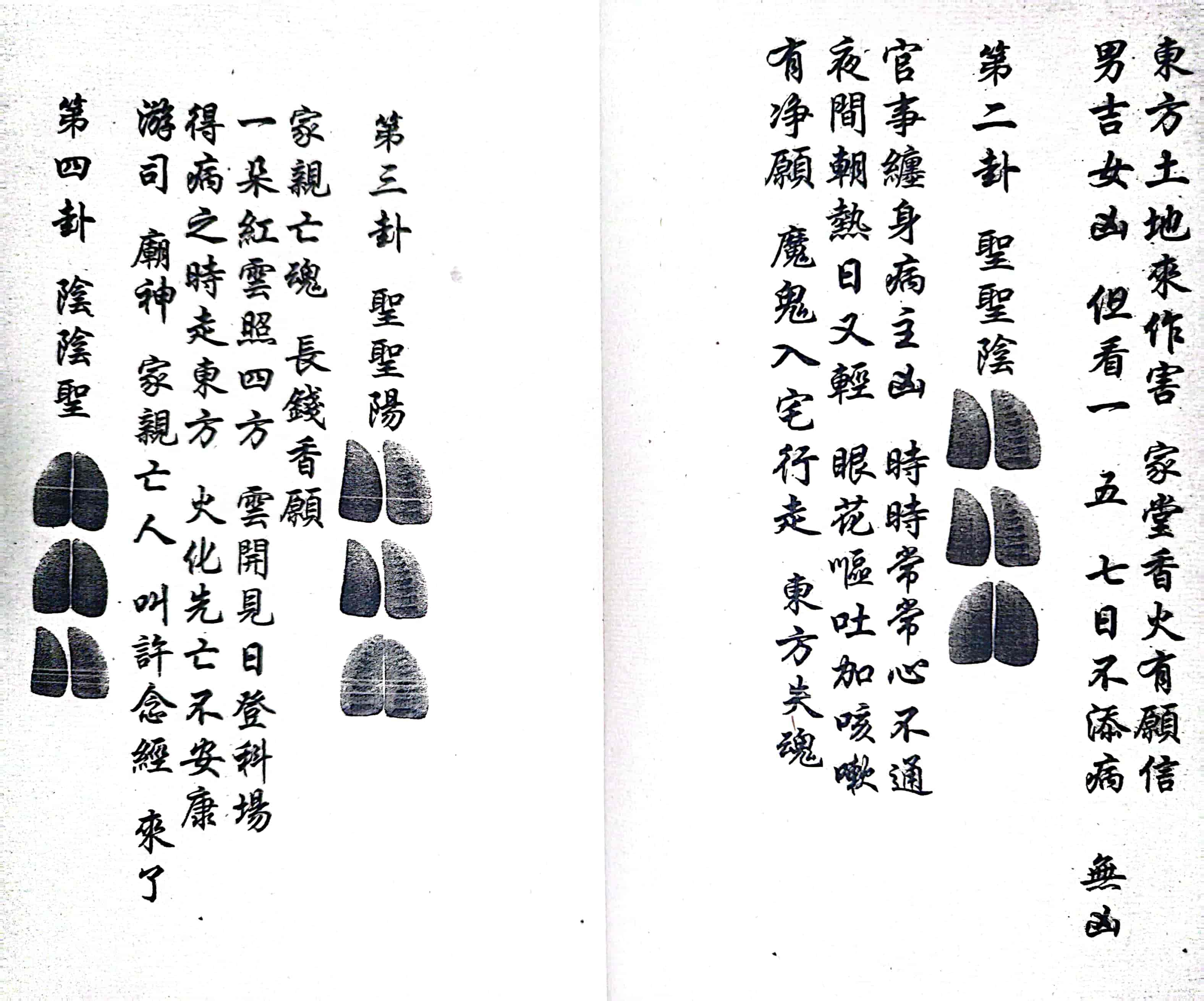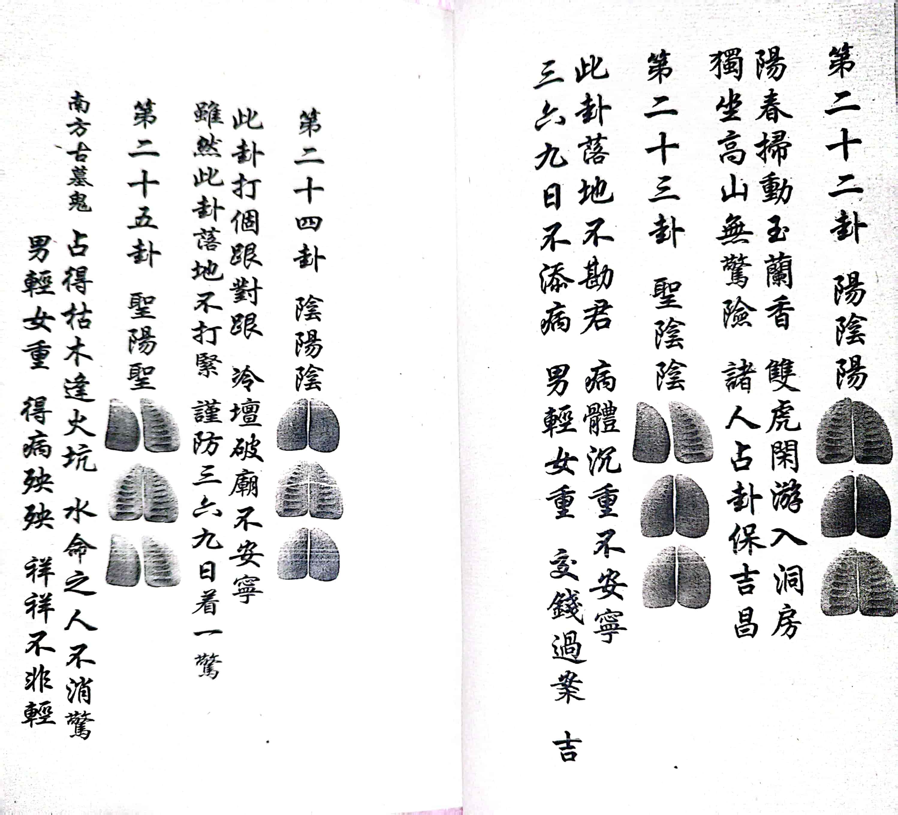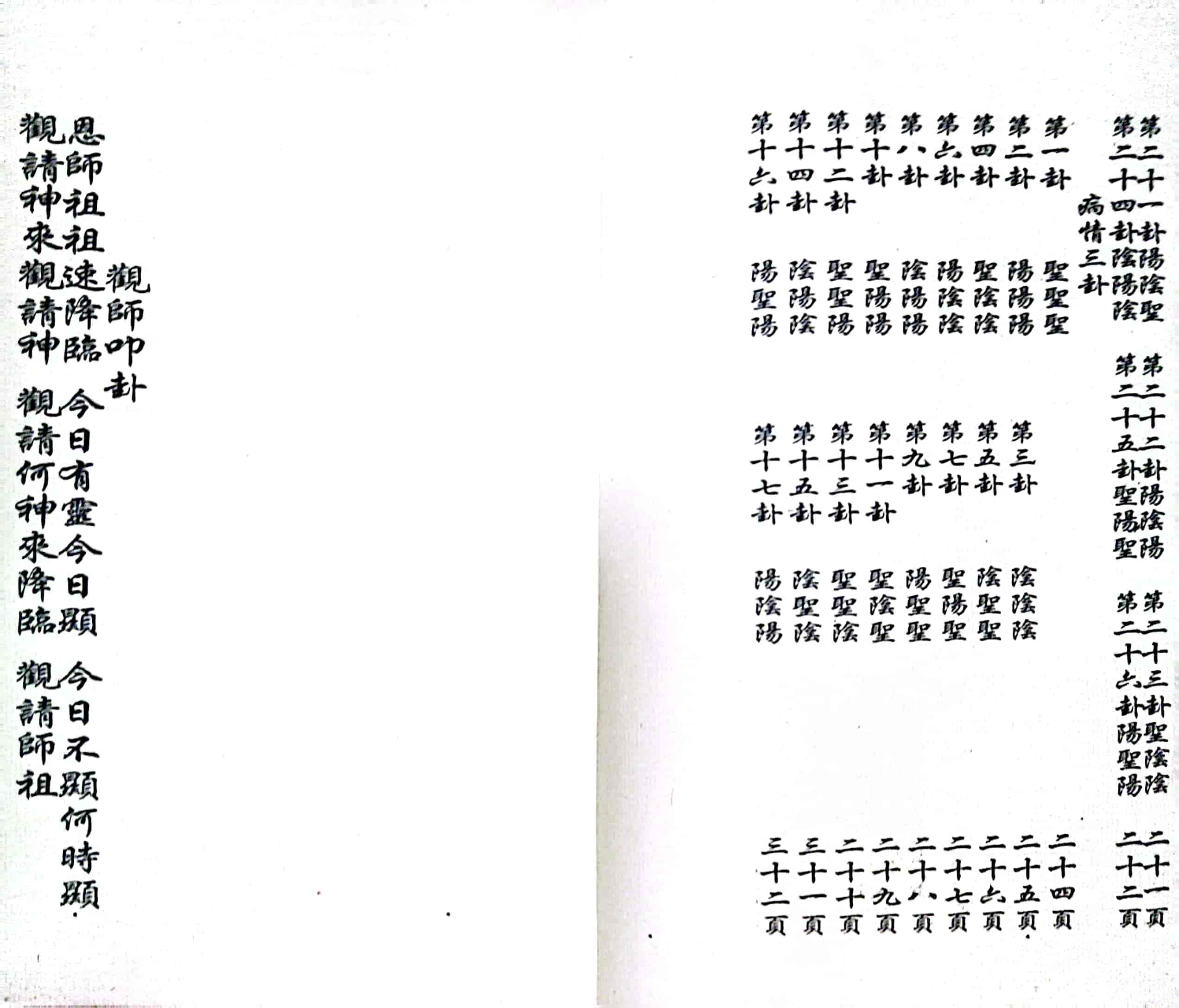 《卦金书》3册,内容包括本命三卦,病情三卦,三灵卦,文王卦书,新集卦书,断卦,要合同三卦等,三册共125个双面,合计250页。