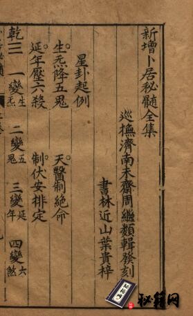 此《卜居秘髓》题造福散人輯。全书分前集(图解)上下卷,前有熊维尧撰题卜居秘髓引、论阳宅总断、阳宅大游年。新增上中下三卷,前有袁世振撰题卜宅书引。其主要内容是介绍择地造居、阳宅宫星等。此书应为明万历二十三年金陵建阳叶贵近山书舍刊本。