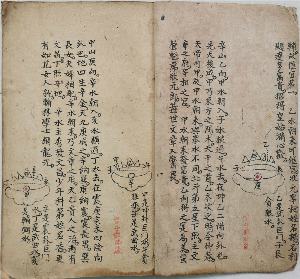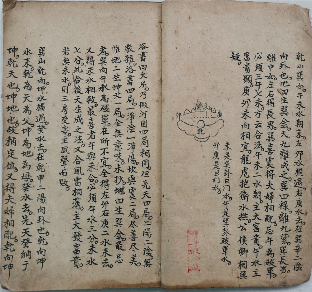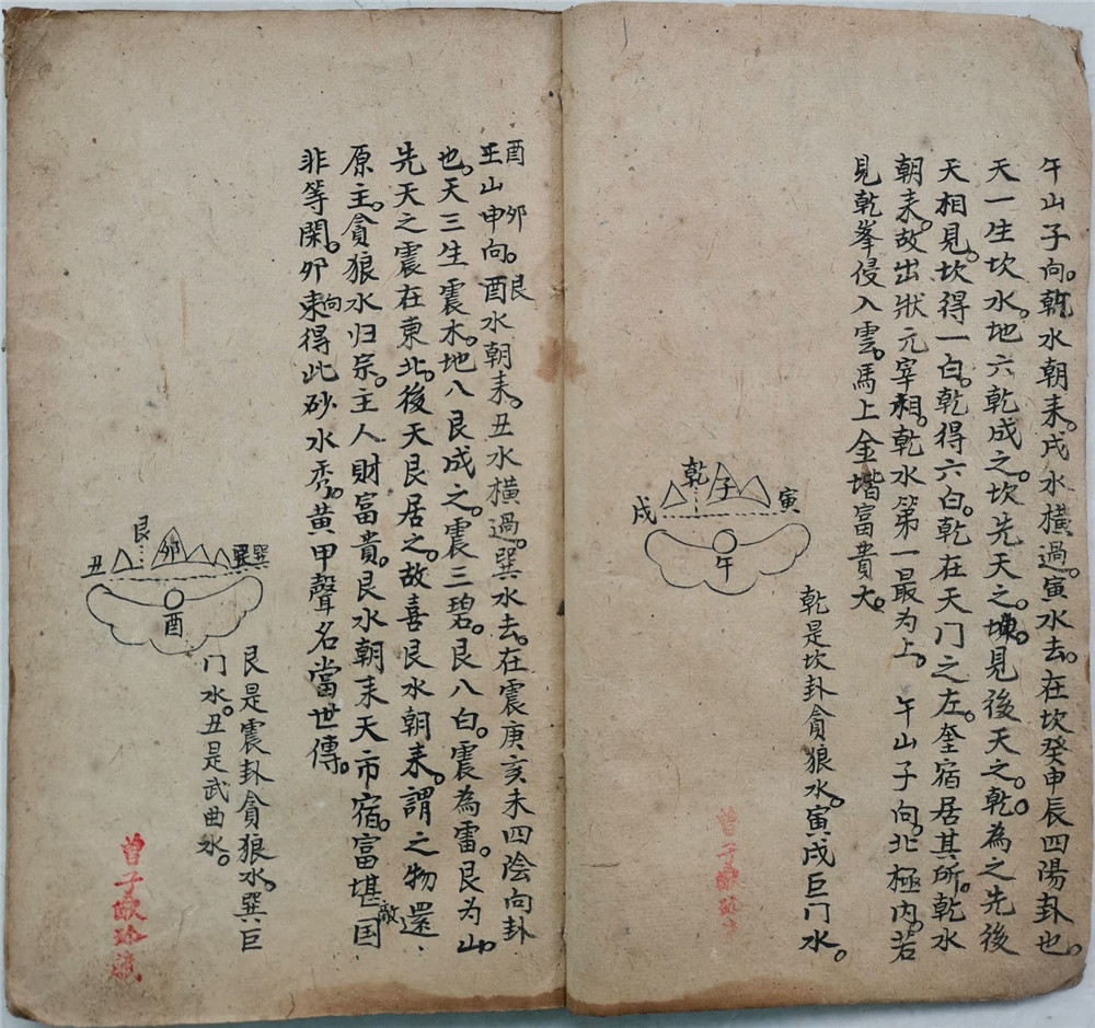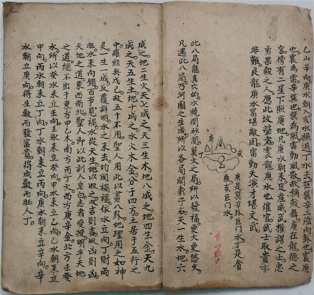 《龙局真穴秘断》(廿二局山向),民间手抄本,曾子故珍藏,图形详解70多种山向,又有二十四山所居二十八宿方位,拨砂要诀,三关一局诀,辅星翻卦以向为定即禹王治水之法,文王后天八卦水法,大阳入二十四山定例,天帝入山定例等,全书37个筒子页,合计72面。