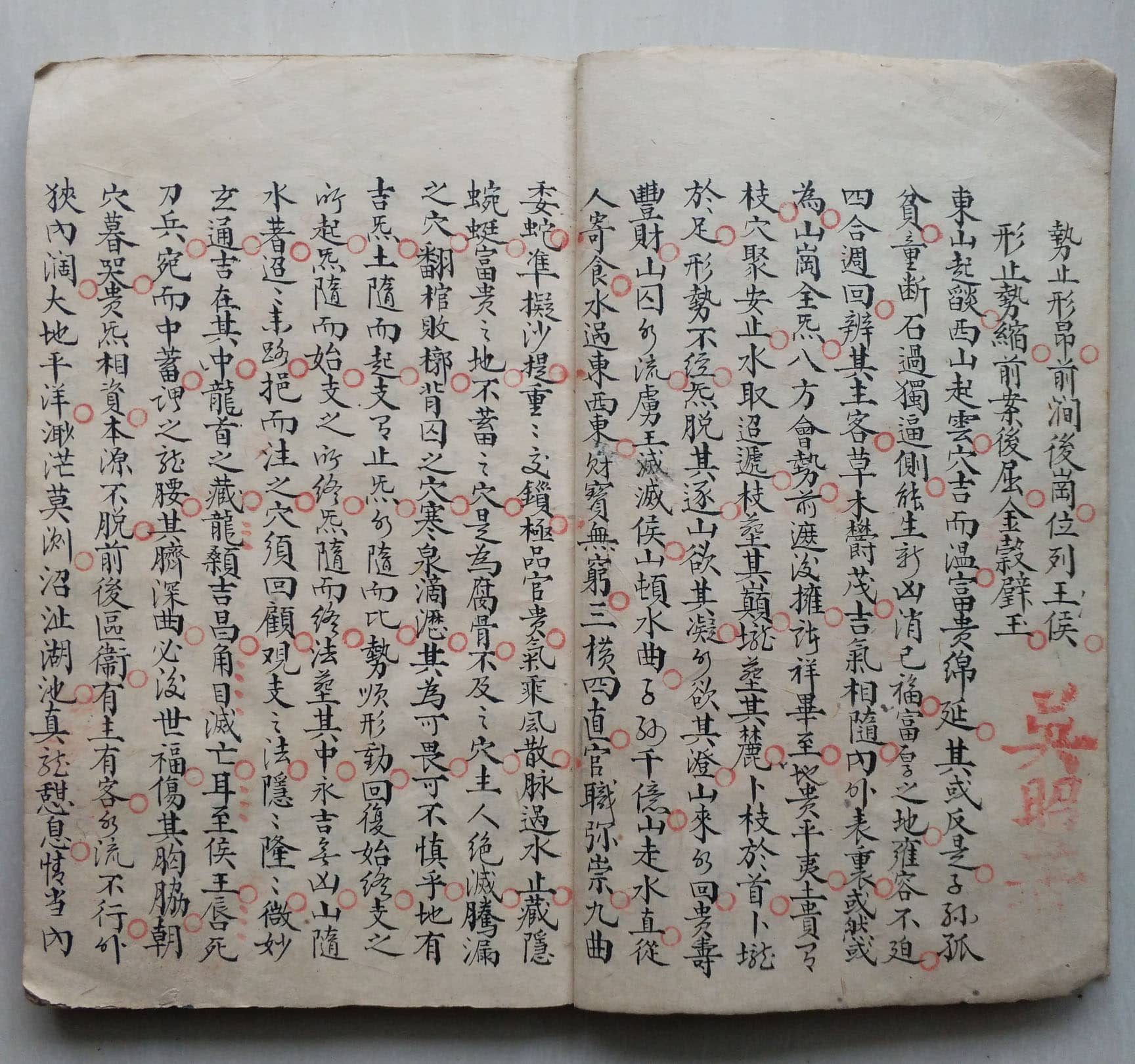 《地理正宗青囊老传》,(清)吴昭著,陈卷山子珍藏手抄本。内容包含:古青囊老传、古玄女三字青囊经、古青乌子青乌经、后汉管辂指蒙正义、郭璞狐首经、晋郭纯塟书、寻龙要诀、峦头九星正变、穴法纂要、识龙说、穴法说、砂诀说、善恶水论、分合说、斗临赋、游星濬源、金光斗临经、唐杨曾经序、明蒋大鸿氏辨正等。全书共59个筒子页,合计118页。