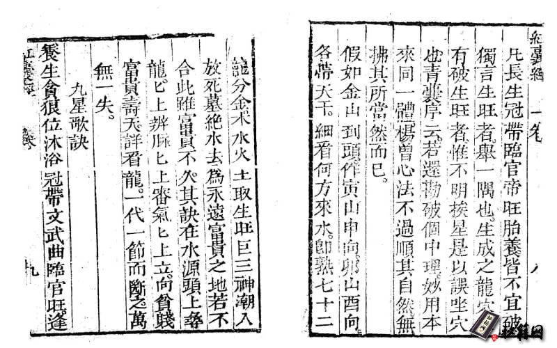 休說六秀水,恰似眼前花。自言誇 道會星辰,都是妄傳名,連山鬼運固為妙,究竟亦非好,又向山頭指貴人,颠倒轉家貧,天星鬼卦都無用,諸星壶中空,說道黄泉十二路,的是無真趨,番見絕命諸卦財,一動見殃災,不嘵紅囊經,坐穴下后人丁絕,卻將說或惑愚蒙圣術豈知蹤,九天玄女真口訣,逐一為君說,山合紅囊青囊便得真,救得世間人,合得九星宗妙訣,五行要分别,七十二龍分五音,仔細認天星,六十甲子循還佈,認得吉兇處,四十八局是分金,逐位細推,尋明穴明山明水路,尋取五行布,金木水火義精通,番值八山奇,分局佈局排星卦,五行通用也。番山番值五行蹤,世間少人逢,但將牢記取,禍福靈如鬼,不信但覆古人墳,處處合神文,此是楊曾真口訣,匪人休浪洩,有人傳得值千金,便是常年司馬身。