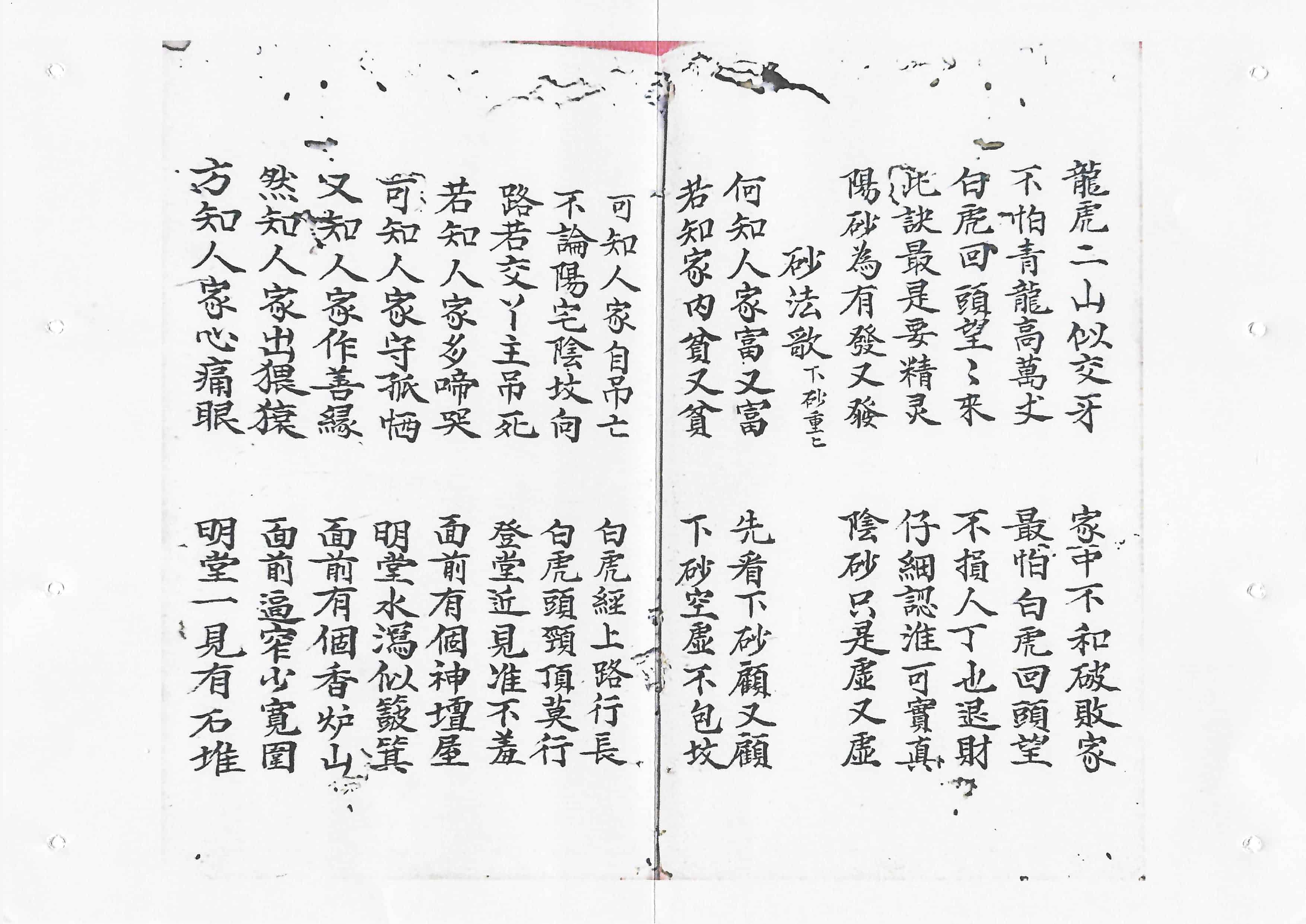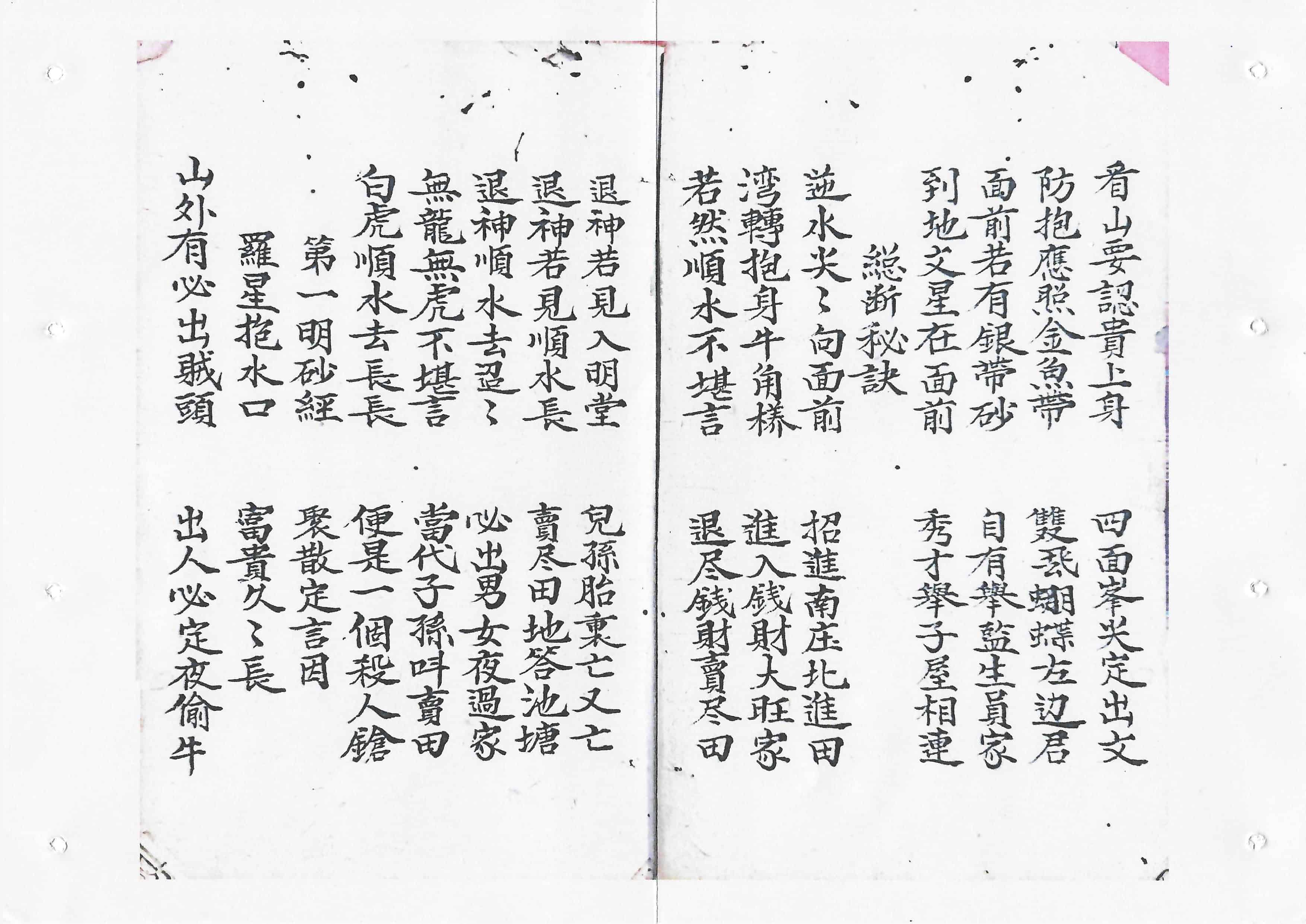 内容包含:龙断,总断秘诀,龙虎抄头诀,砂法歌,八曜歌断,中火星山结出富贵论,纳卦消水法,消峰论,天官符歌,五运六气歌,逐年五炁歌,七曜用事并断,五星穴法,凹风吹断,二十四山凹风阳宅断,论五星穴断,笔山论法,地理三十六问,五星开口断,形相断,分房断发,认龙诀,论坑风吹断,阳宅仙机开门放水诀,五行颠例歌,阳宅以正五行歌,谱序记,千金赋等。。。
