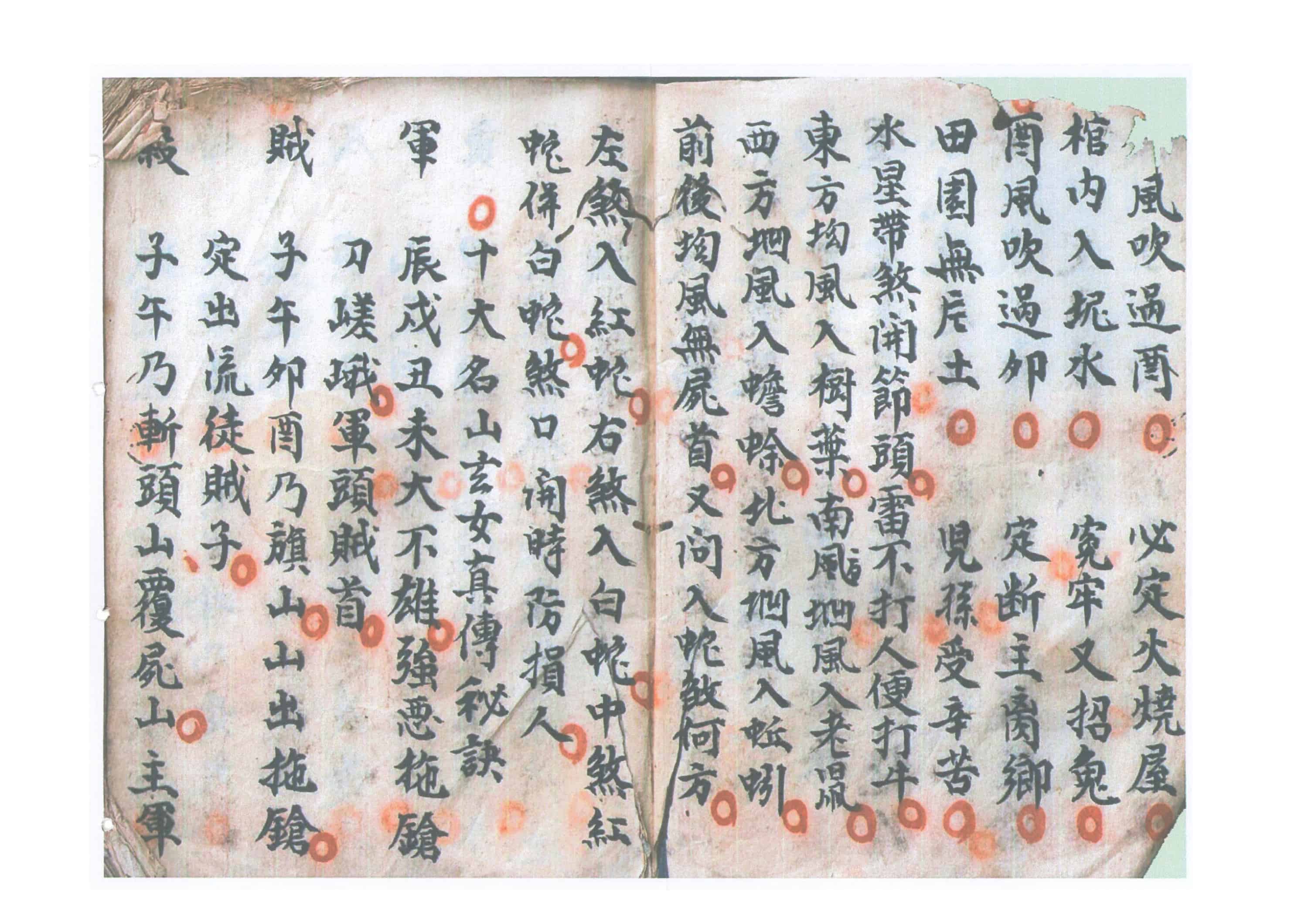 水星带煞开节头,雷不打人便打牛,东方坳风入橱叶,南方坳风入老鼠,西方坳风入蟾蜍,北方坳风入蚯蚓,前后坳风无shi首,又问入蛇煞何方,左煞入红蛇,右煞入白蛇,中煞红蛇并白蛇,煞口开时防损人。