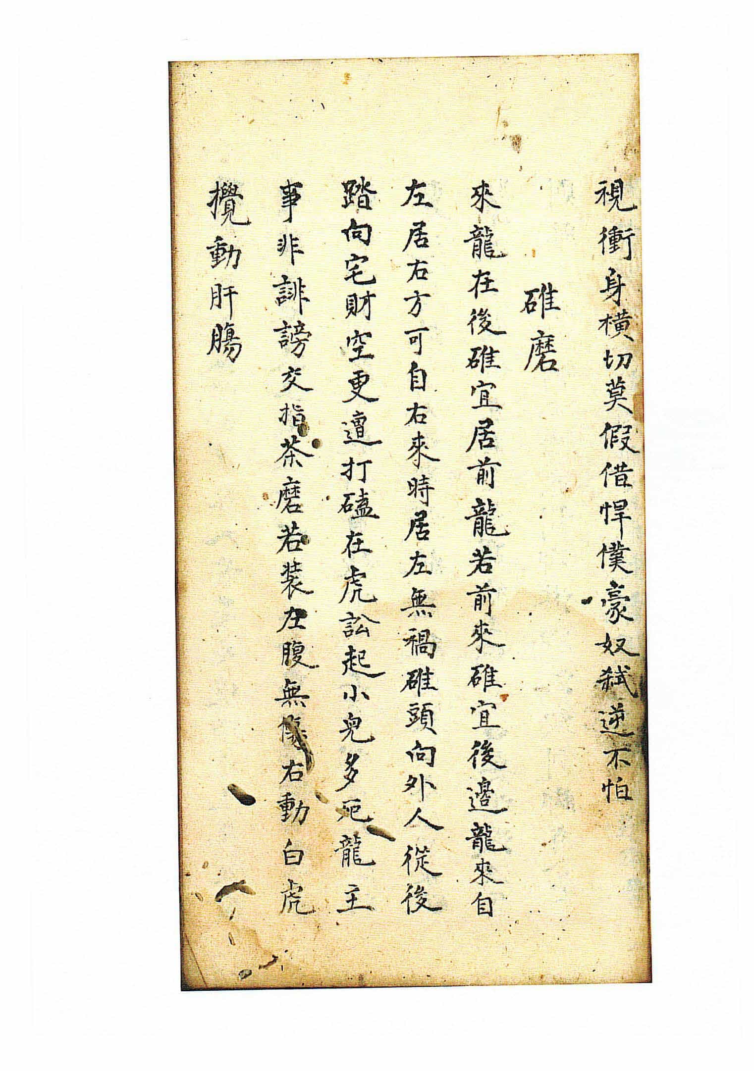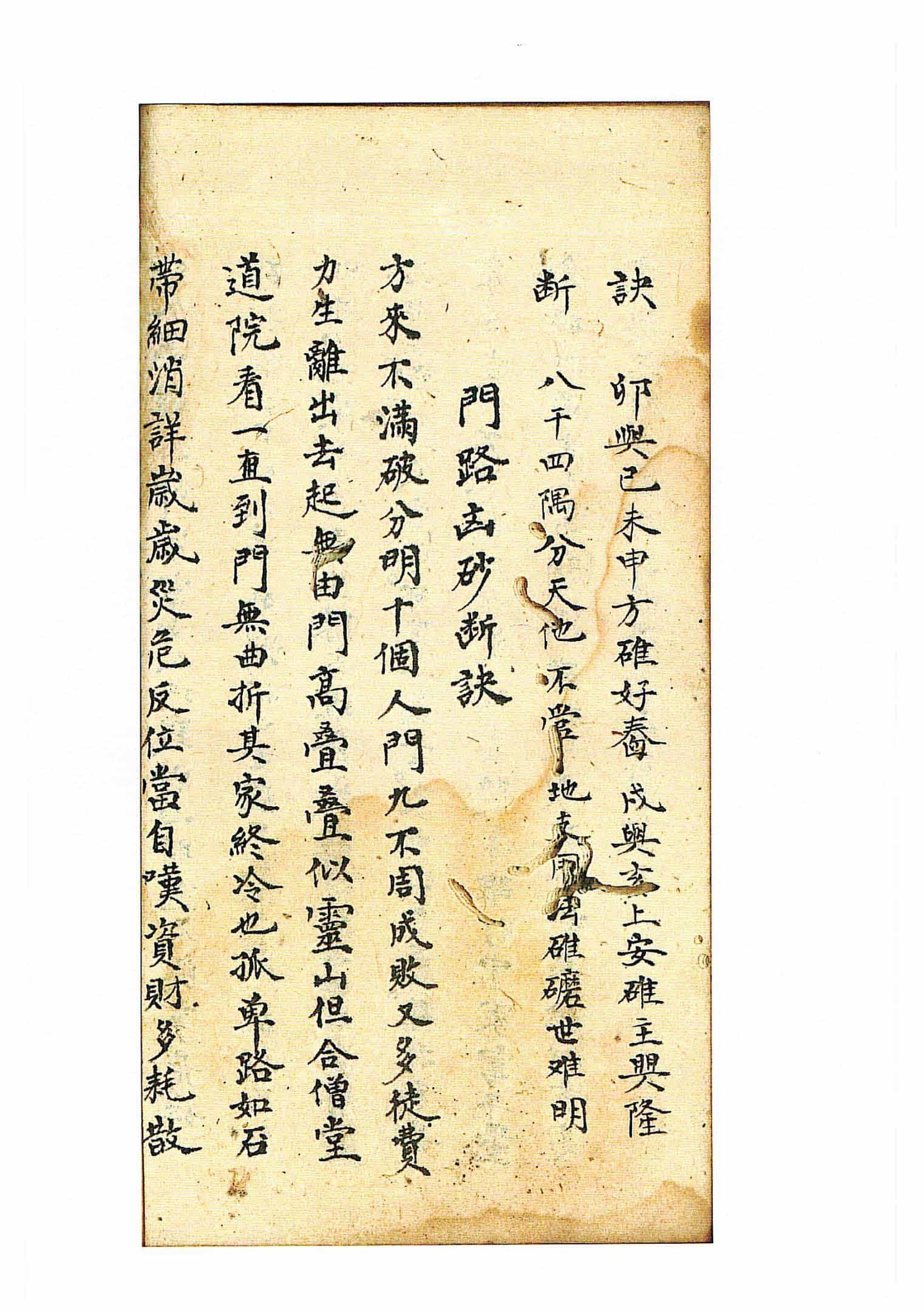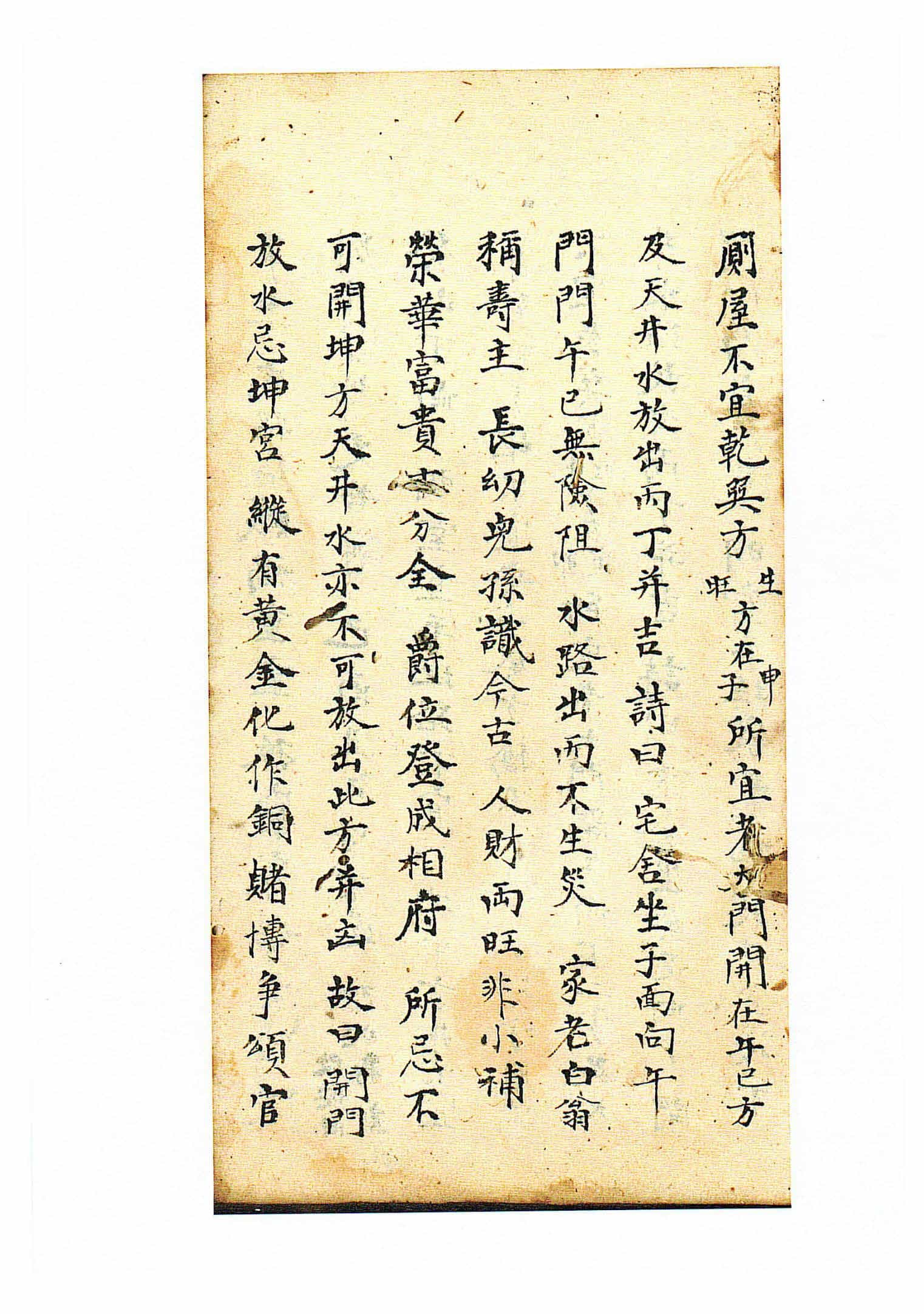 《杨救贫传授阳宅二十四山》,内容包含:阳宅二十四山明堂论,开门、天井放水、门楼、厕所等方位吉凶论,碓屋方向断诀,门路凶砂断诀,论龙到头结阳宅与阴地诀,论风射方位宅坟一理同断,砂应,水口,水应,相扯,宅木,墙篱,池塘,天井,宅道,基徵论,屋忌,四兽,宅病,装门,造序,屋水,碓磨,塟口,罗纹,土缩,深浅等。全本共84页。