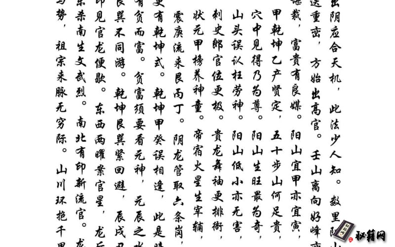二十四山兑艮亥,此是乾坤正龙脉。艮亥江南奇,江北宜西兑。庚辛丙丁是天干,寻得真龙是为最。震巽二卦管东南,百里之间少相会。阳贵离与壬,坎癸宜癸对。阴阳仔细看形势,大地形势自奇绝。山川认得龙脉真,宜将土圭量其穴。祸兮福兮从此论,步量山水有元因。千里真龙吐真气,步得龙真福自致。