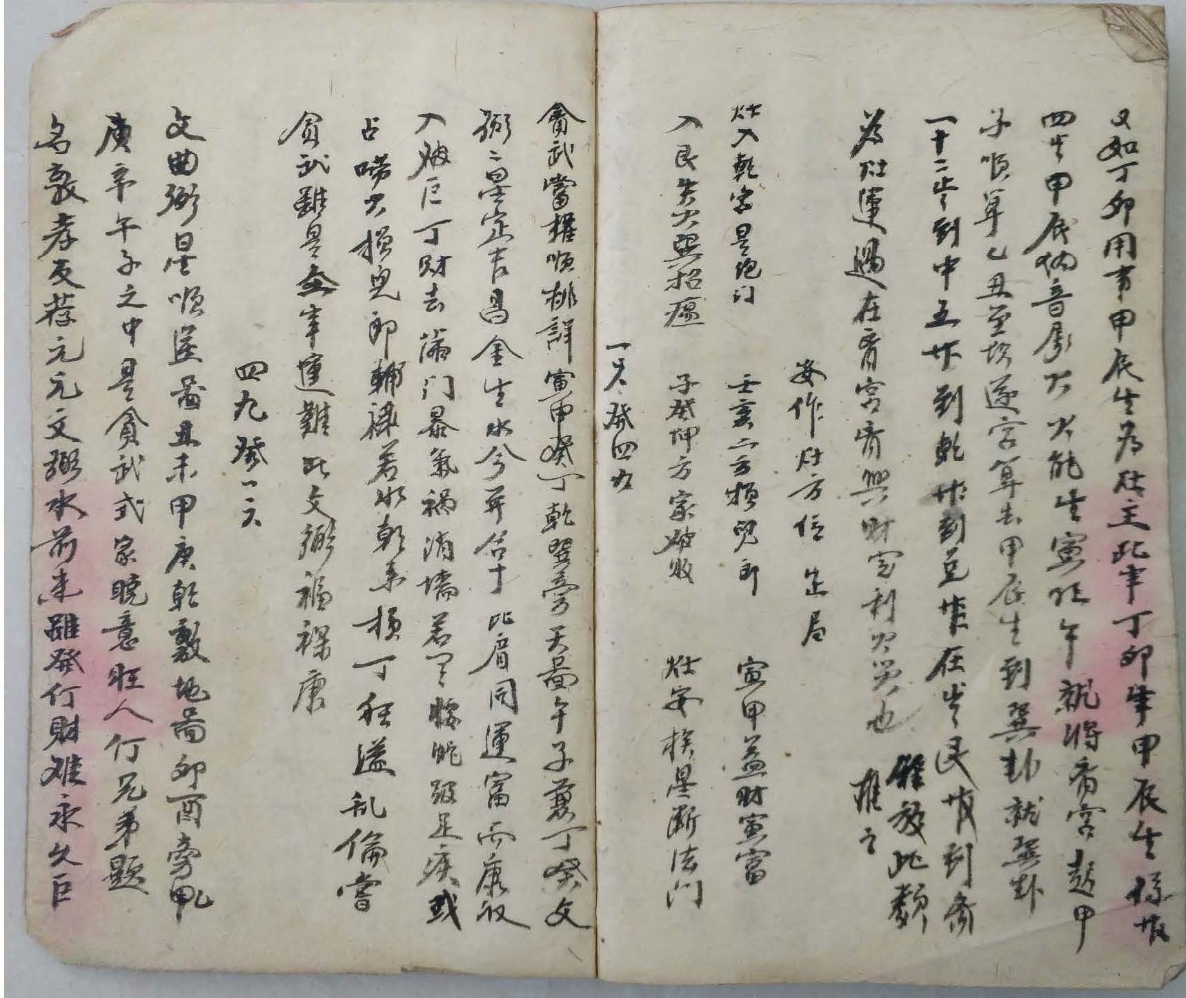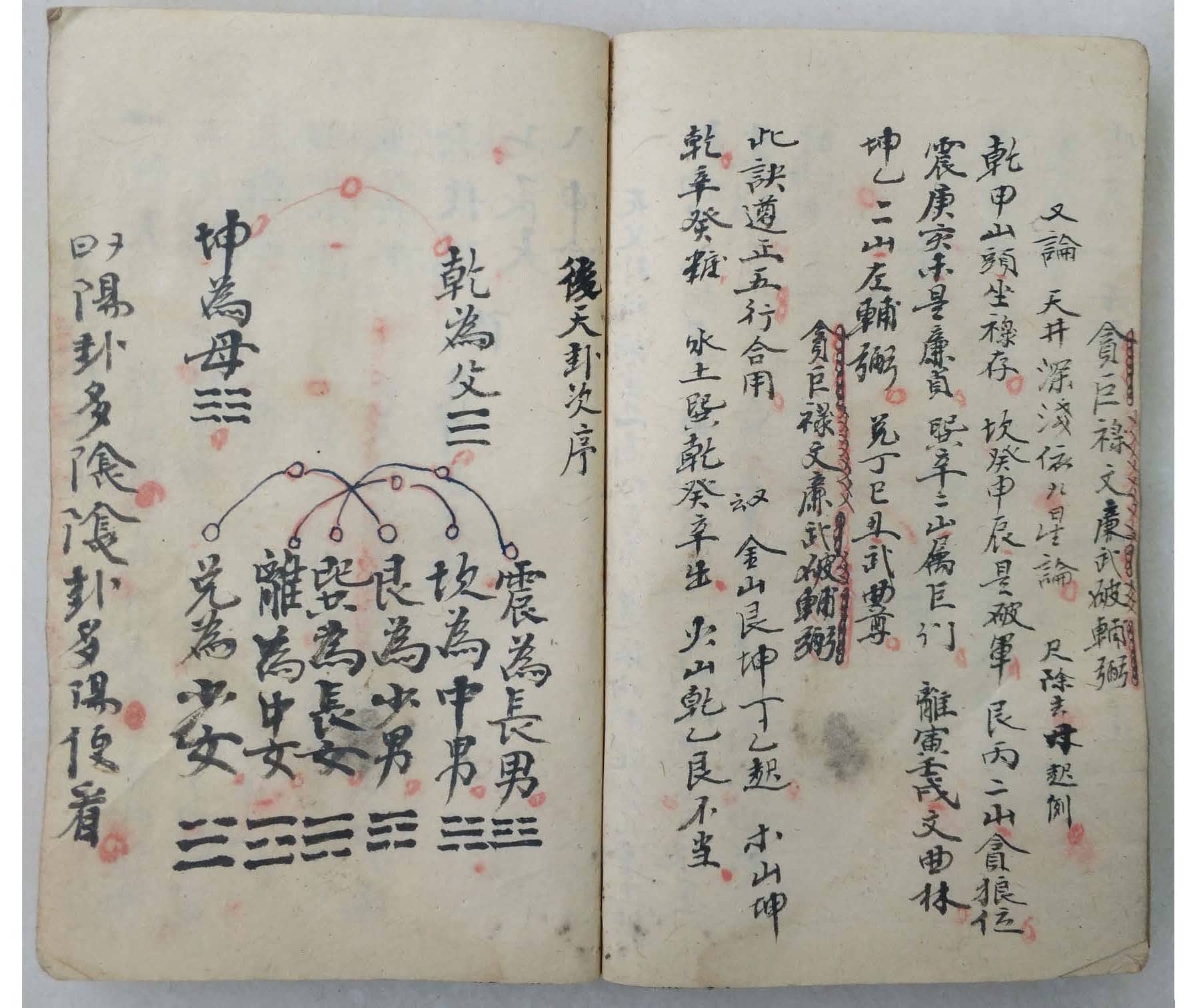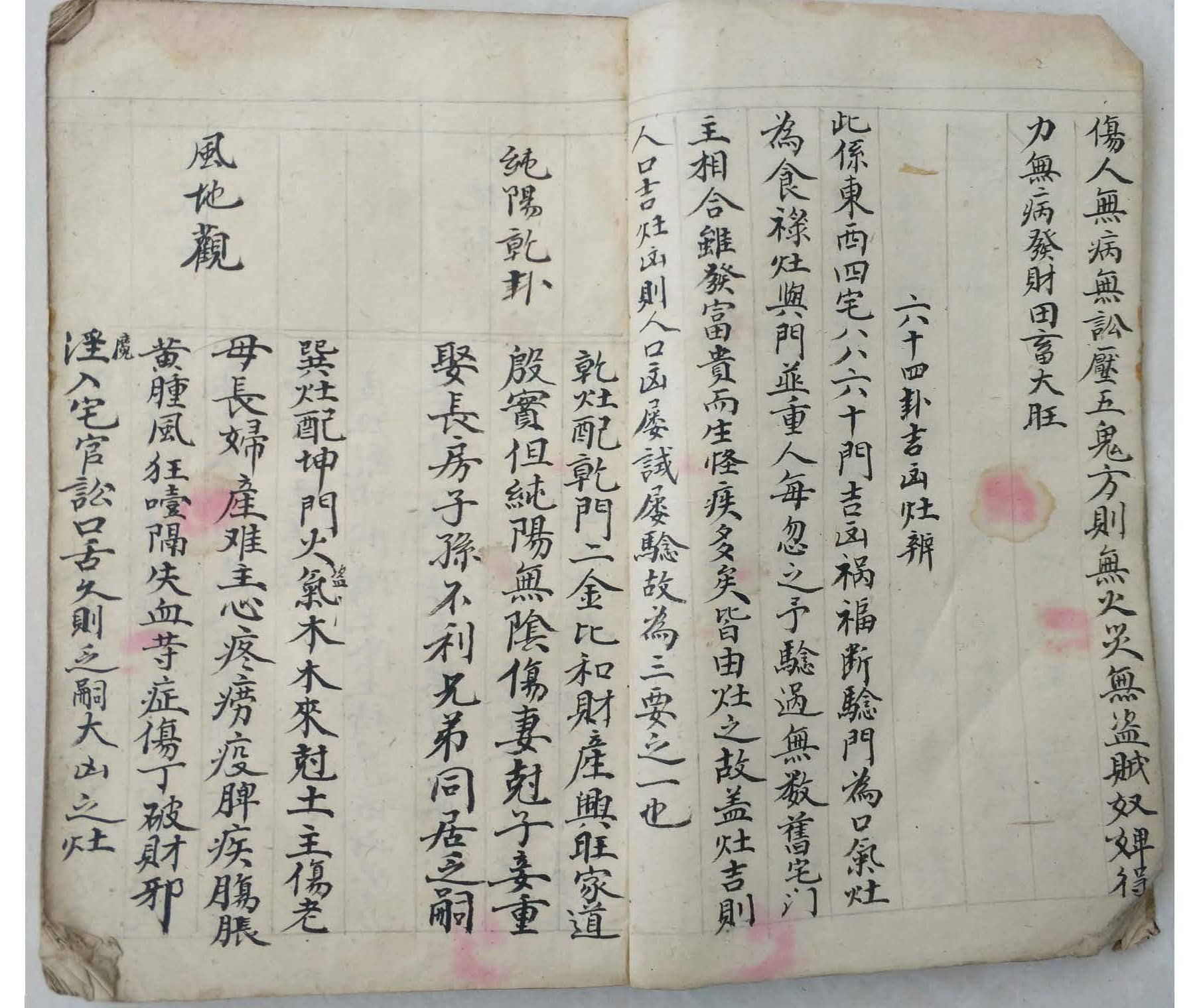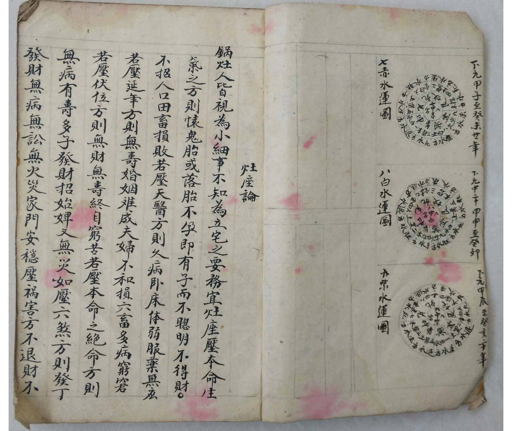 《灶座秘诀》,清光绪二十五年岁次庚子孟春月手抄本,全本共53个双面,合计106页,民间对制灶方位颇为讲究,此书对卦象吉凶辨灶描述细微,后有杨公地理秘籍等。