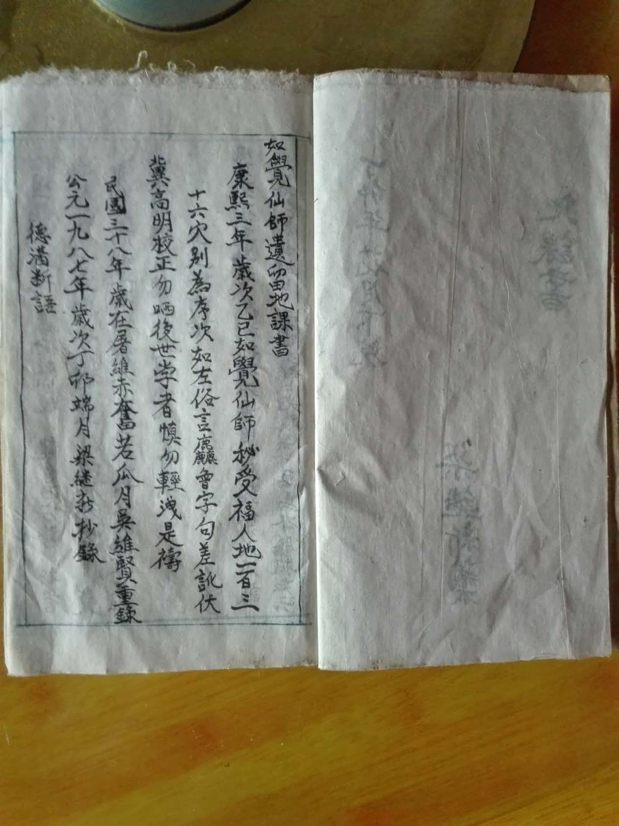 《如觉仙师遗留地课书》,民国吴维贤抄传,梁继新抄藏,内容主要为贵州毕节地方留题地,全本共74个双面,合计148页。