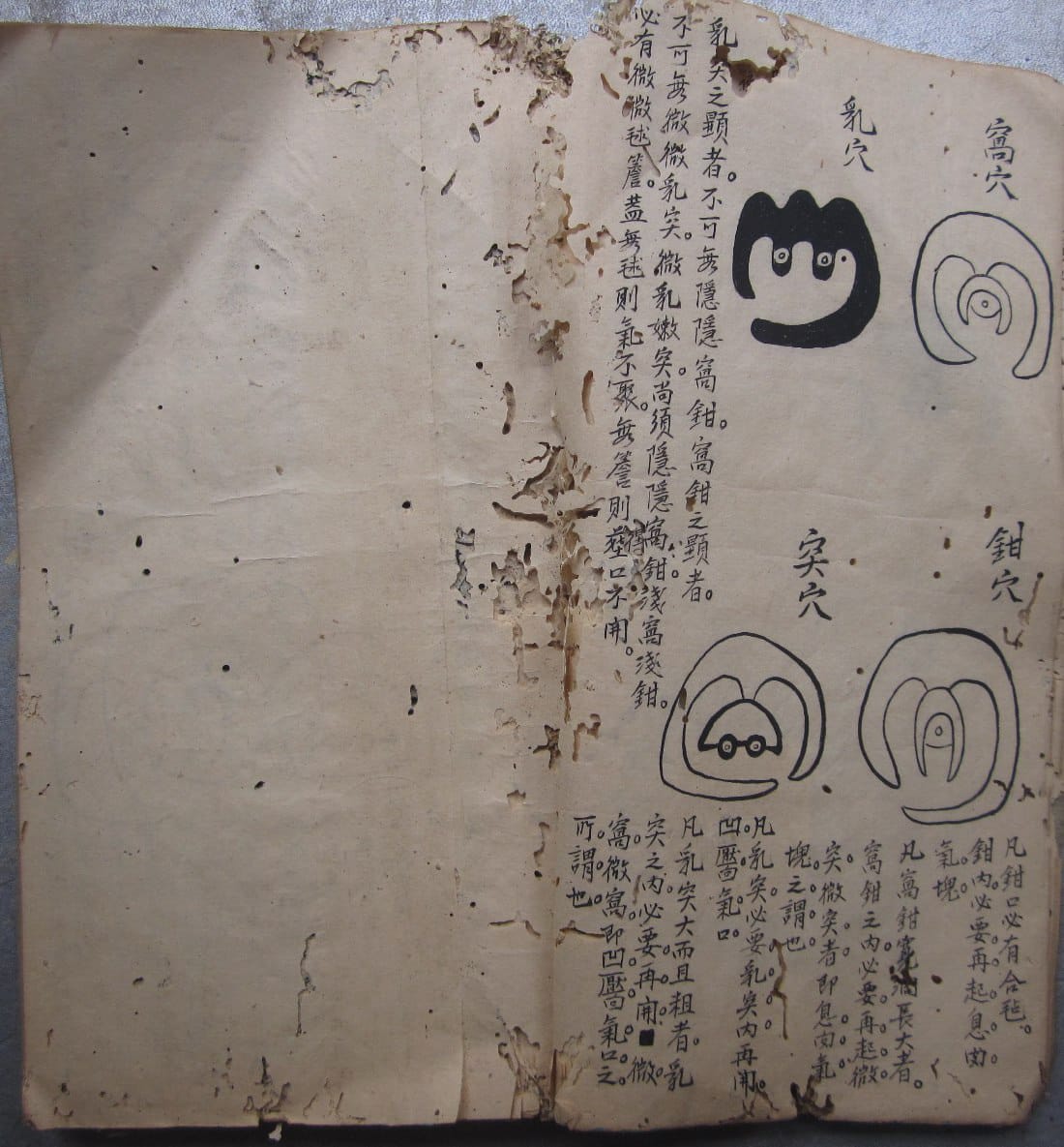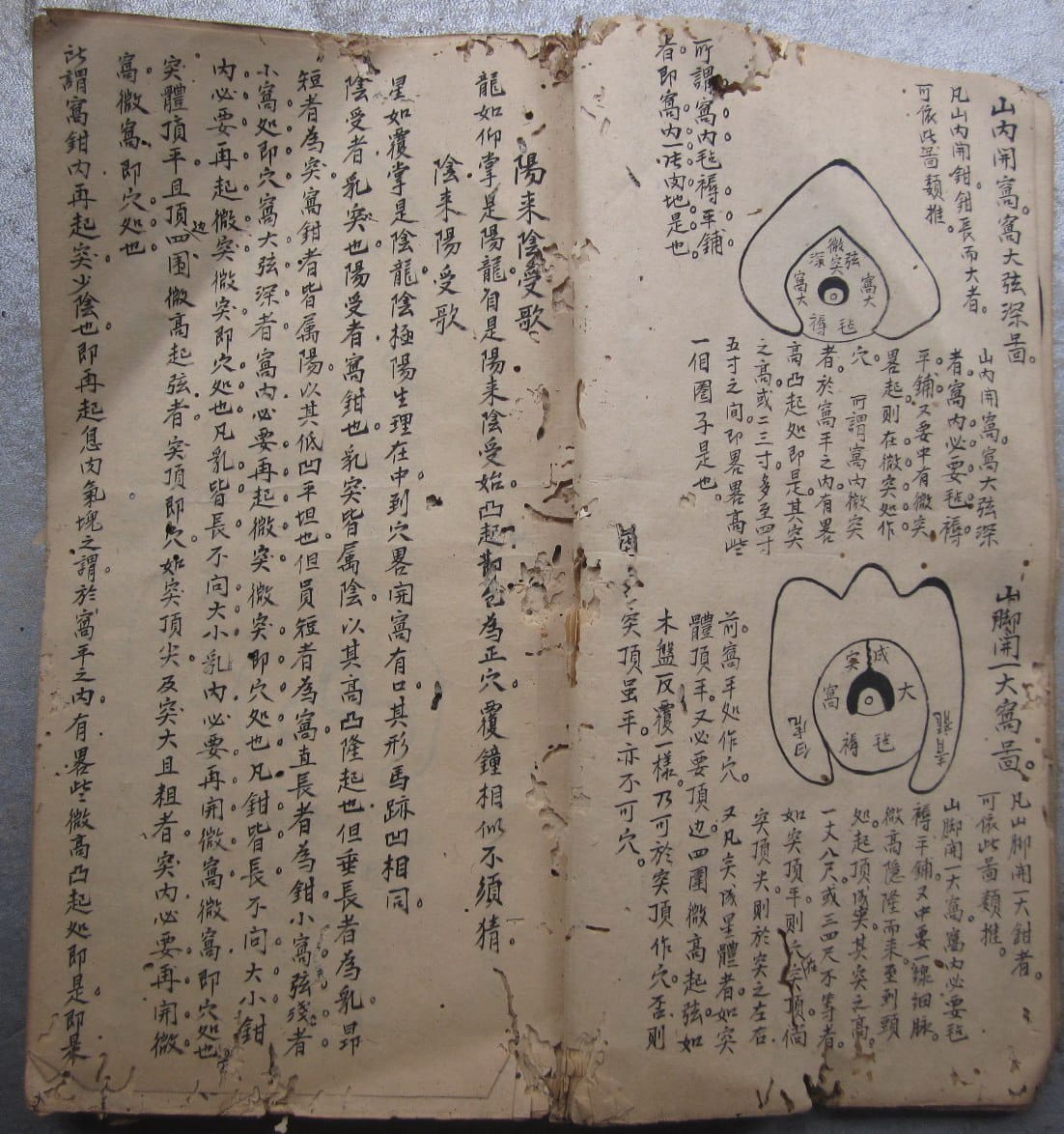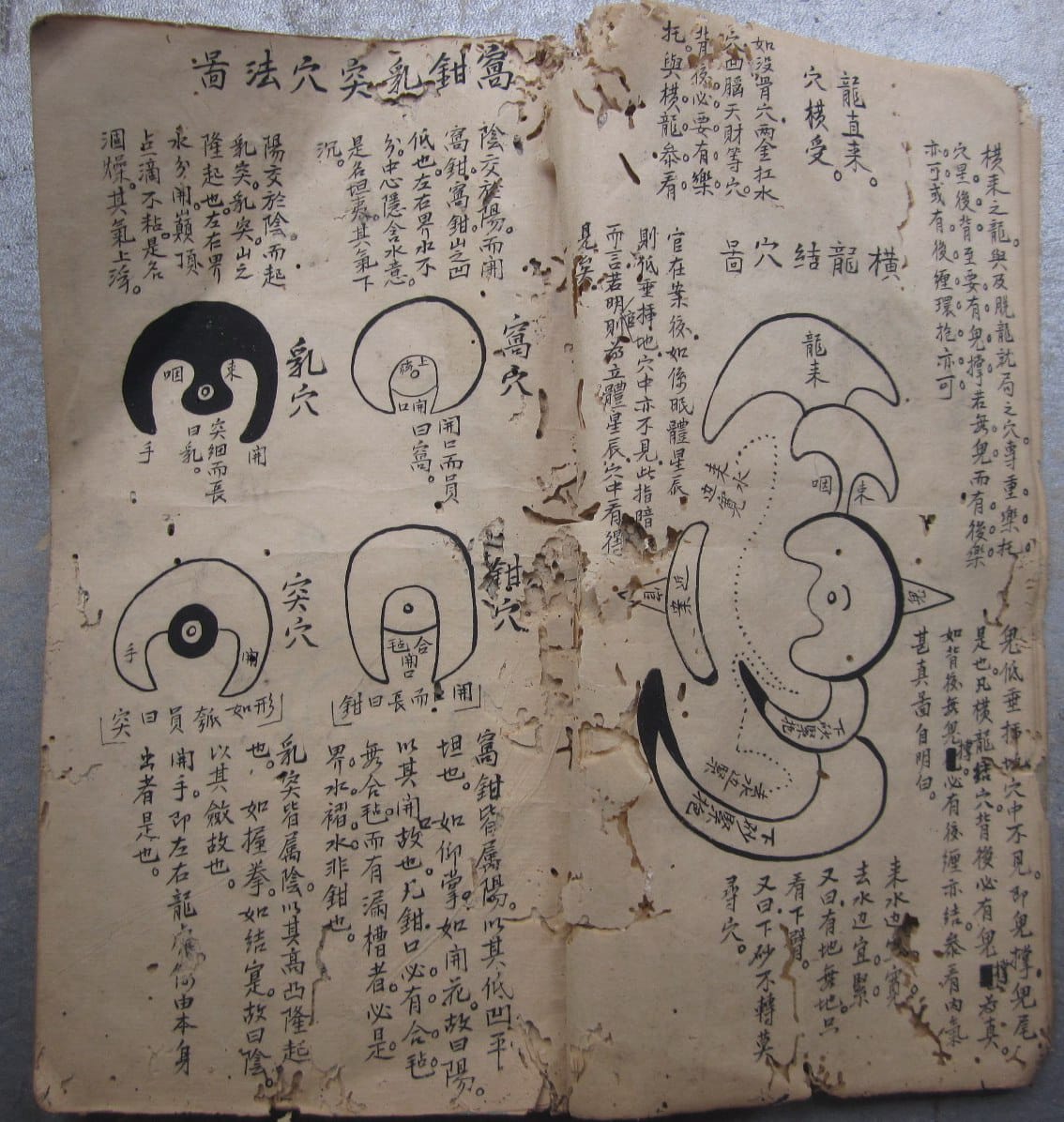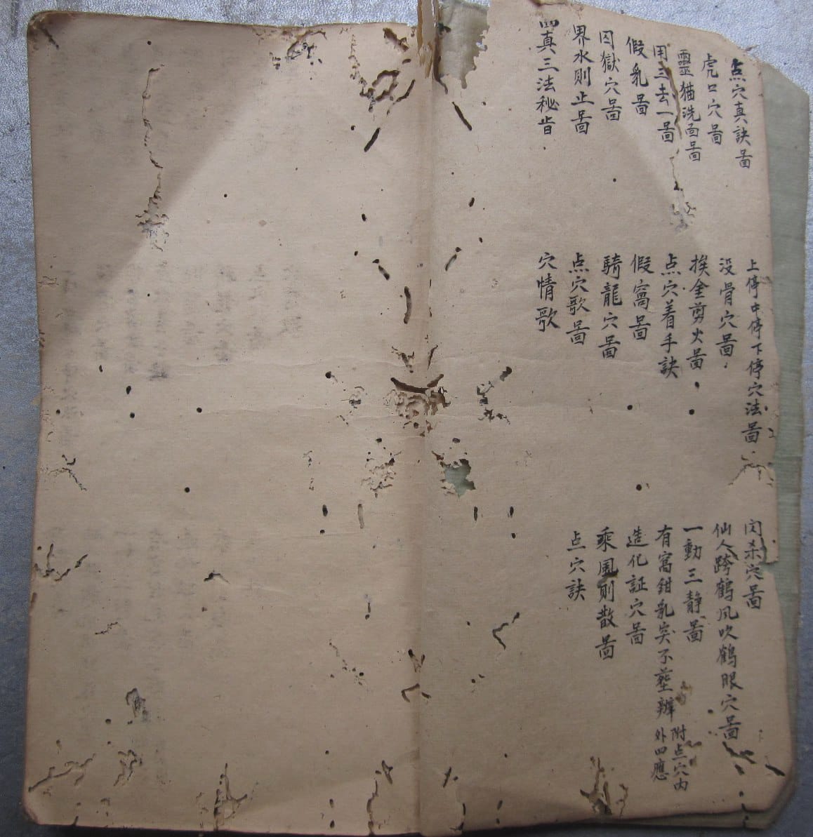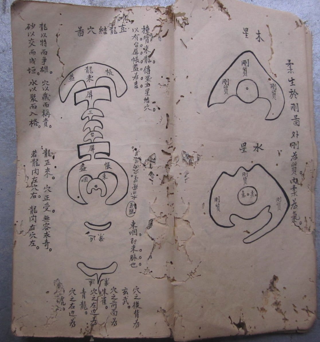 《寻龙点穴秘诀》,因年代久远,略有虫蛀,全本共83个双面,合计166页。