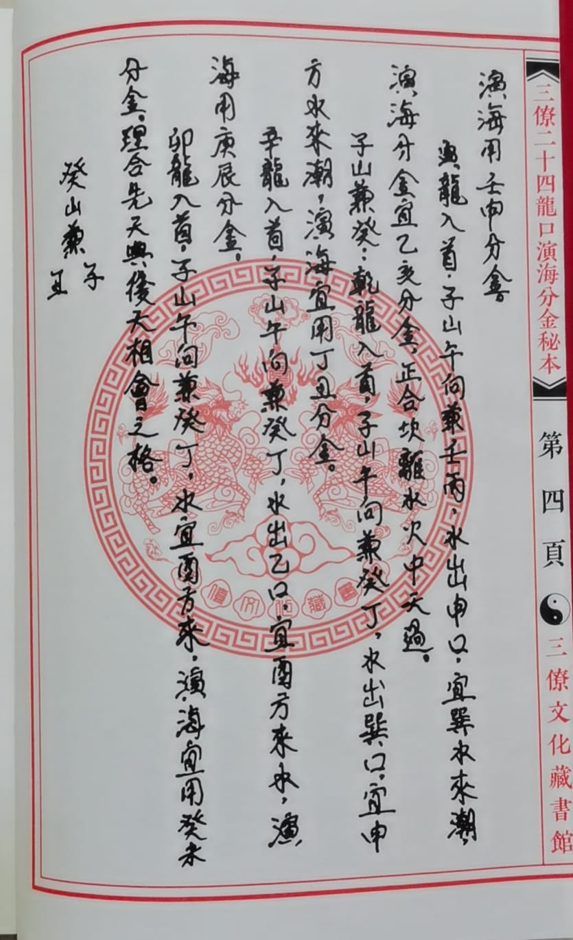 《三僚二十四山龙口演海分金秘本》,曾广钦编著,内传核心演海分金内容,主要详细的写出了三僚演海分金的运用方法,来龙配合走口达到催丁财贵的效果,全本共38页。曾广钦为曾氏二房余庆堂人,是杨公救贫(筠松)第三十七代弟子与曾公文辿第三十六代子孙。