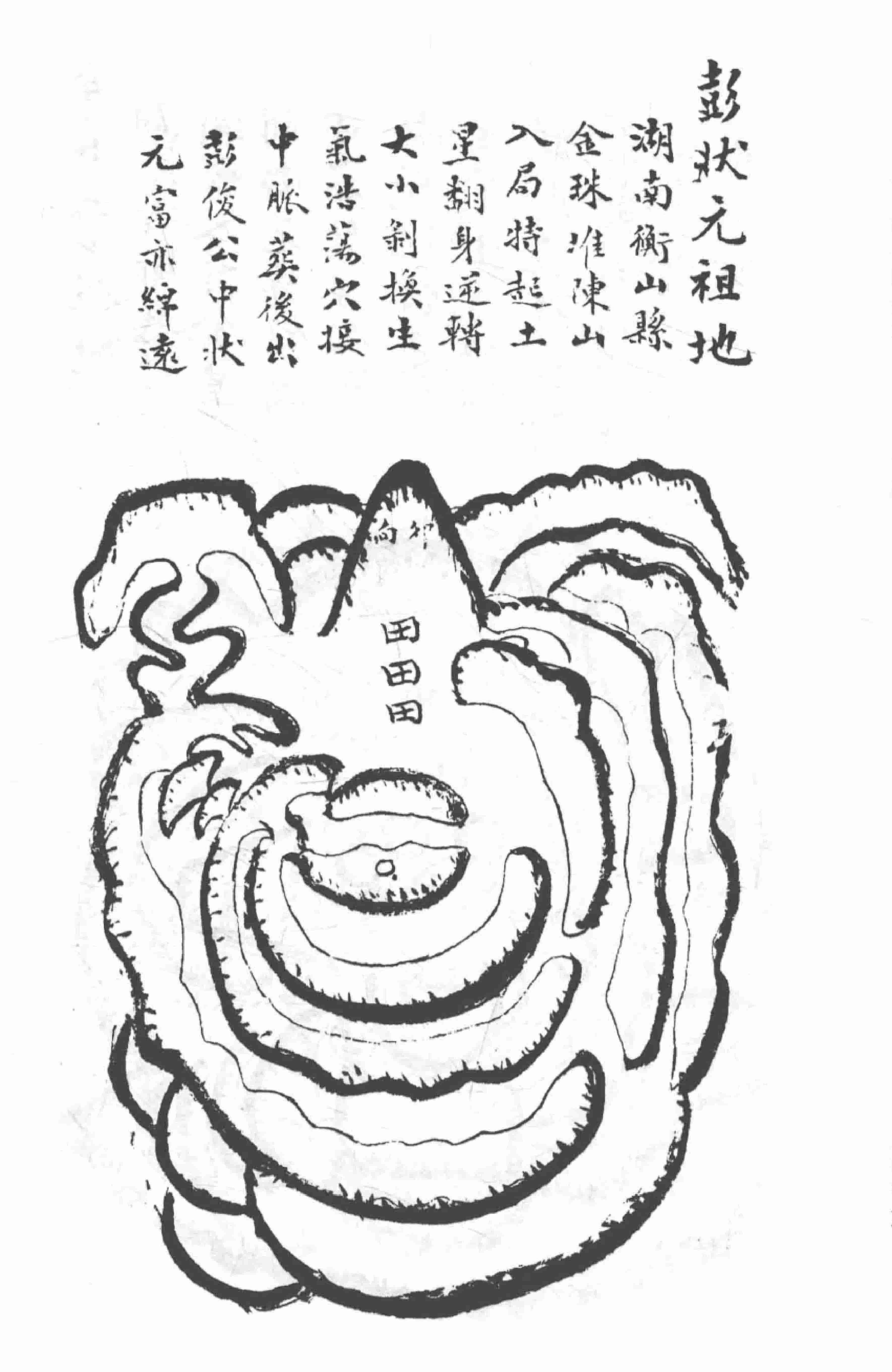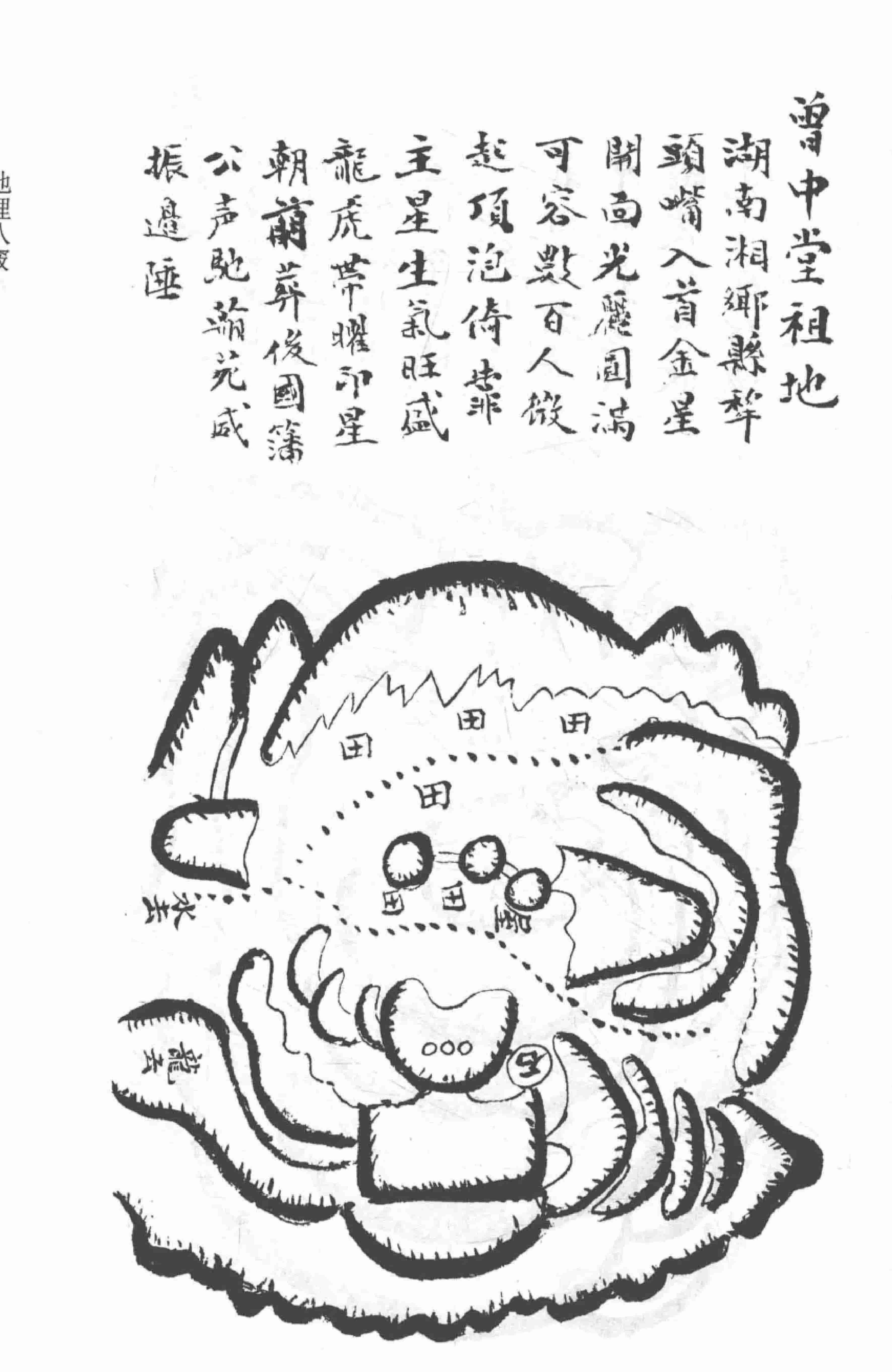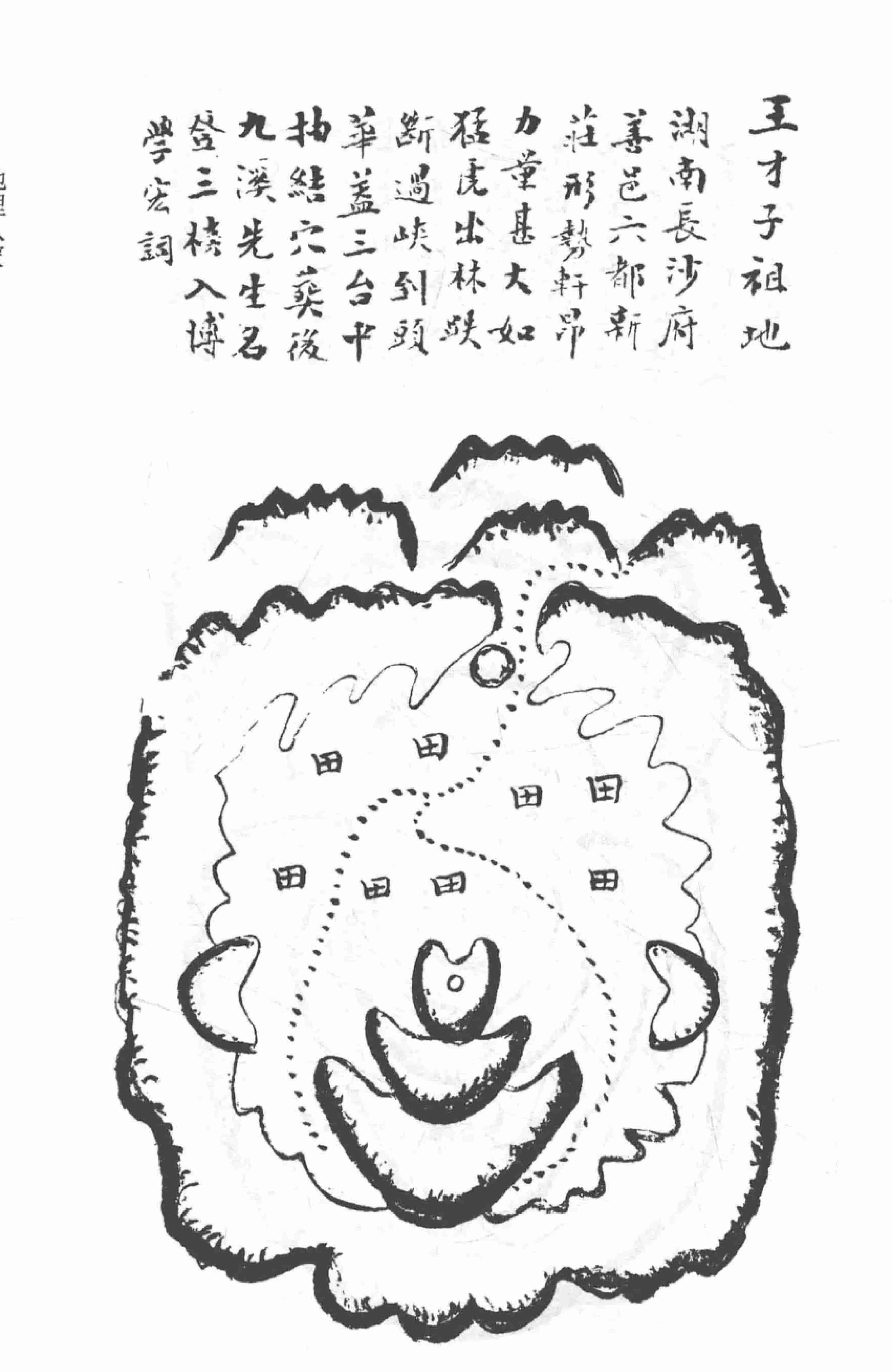 《地理八窍发坟图》,石林轩藏,清光绪九年衡阳县朱冠臣益垣氏手抄本,内容多为湖南长沙、湖北福建杭州等江南地区历代状元、翰林、宰相等名人的发富发贵风水宝地,其以长沙地区居多,每个祖地图形配一段简评,全本共68页。