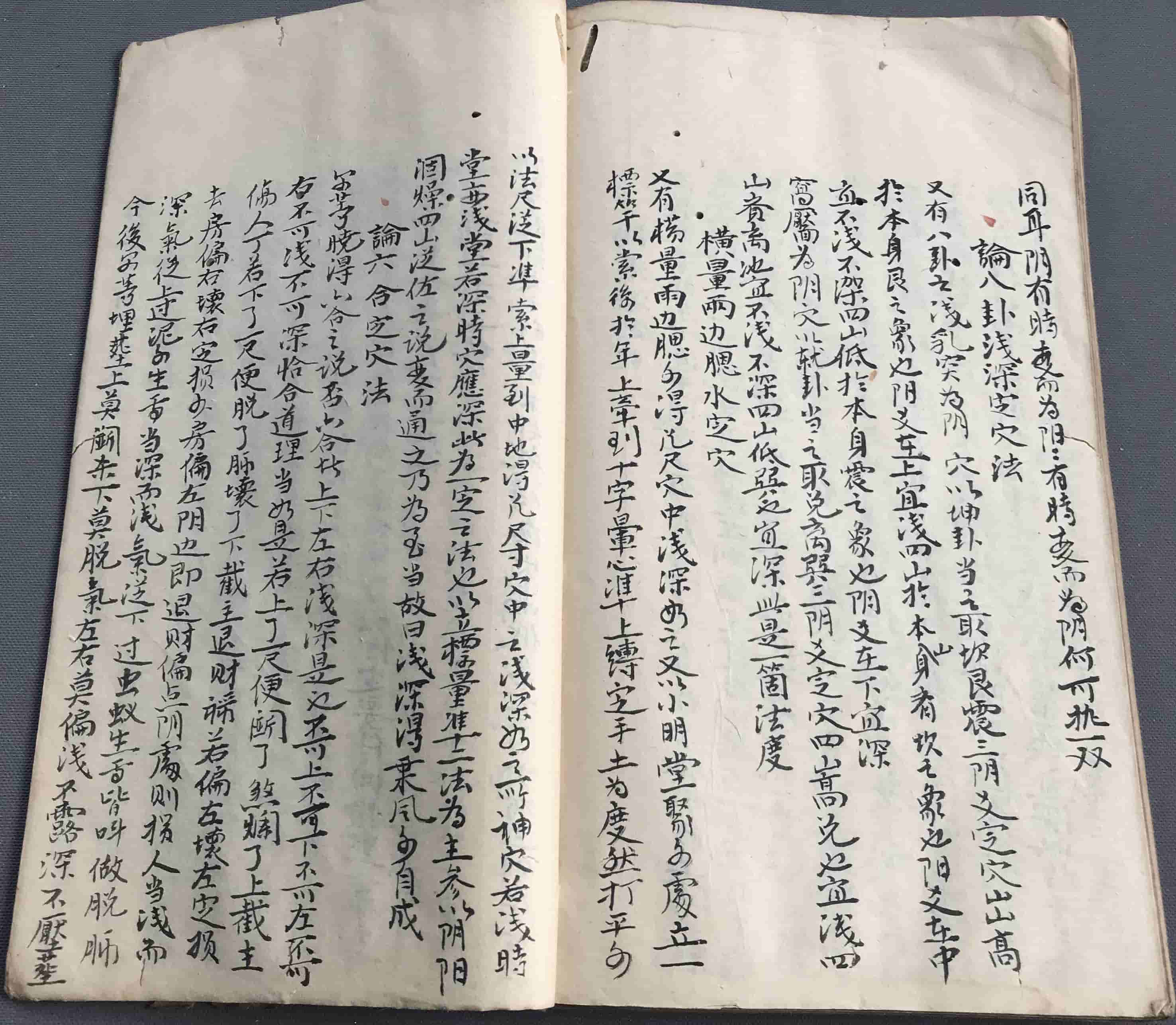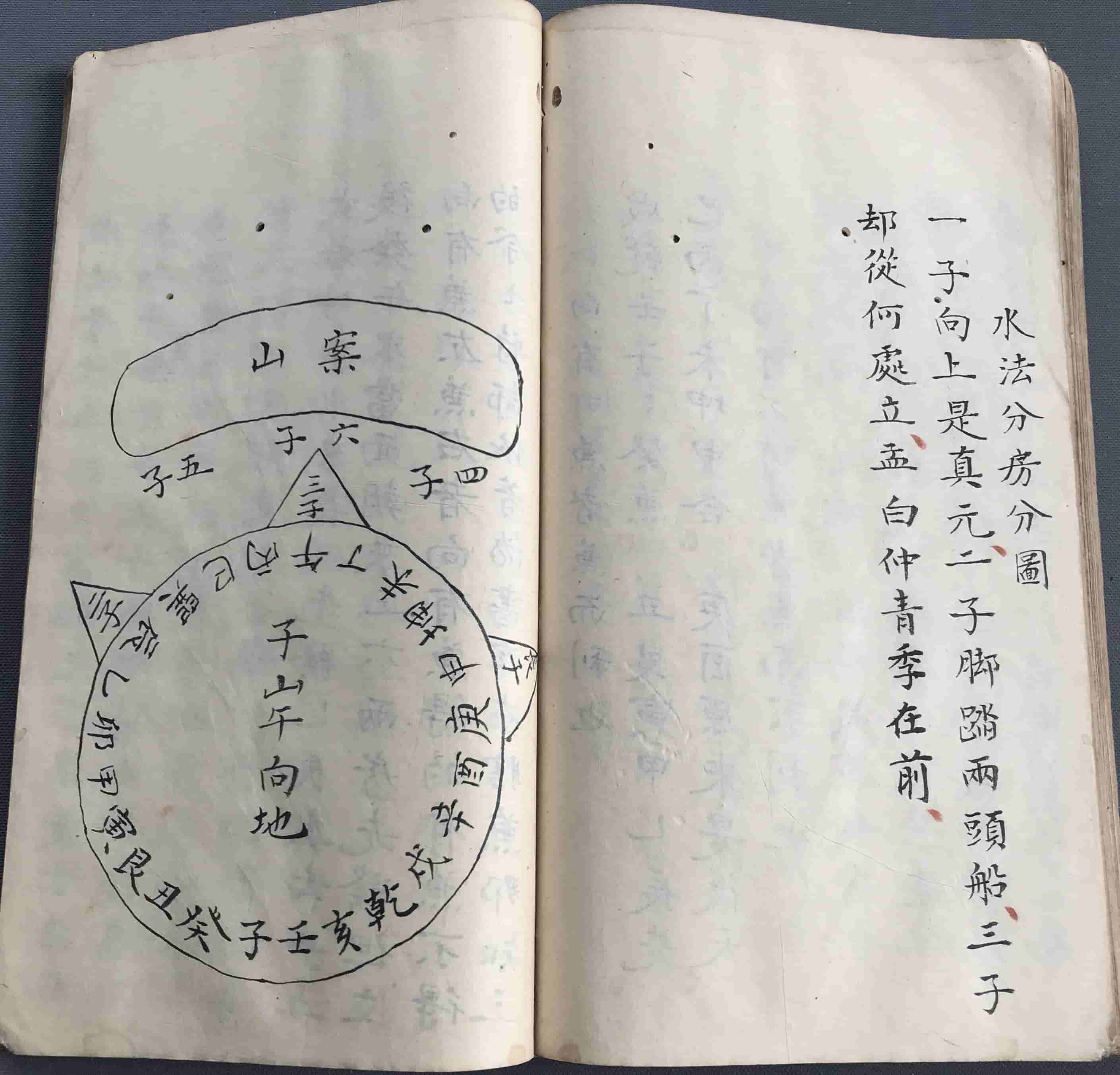 凡登山先看到头,星辰入首,金鱼蝦,鬚蟹眼,乘金相水分合,尖圆四山,归四水聚,又看金水上堂不上堂,出面斗,口圆不圆,左右三乂,又要脚,砂収实方可登穴看,土牛动不动,动者人财不利,穴前但要平坦不要低,陷一步,高一步,定然富贵糍牲,若低陷者定断他退财不利,左边长房,一四七,石边三房三六九,中宫二房二五八,看他那边低陷,即断他那房退财,若见穴前有数丈深坑者,断定妻死亡,退财騐在二房前,坑者当心土箭,亦主刑妻尅子,窝深者,二房败绝,短坑生女不生男,水来朝断定二五八房先发,后来房房皆发,或左右,照房分断如四山,归四水,不聚断定发人不发财,四水聚四山,不归断定发财不发人,四山归四水,聚雌雄,交度人财两发,富贵双全。