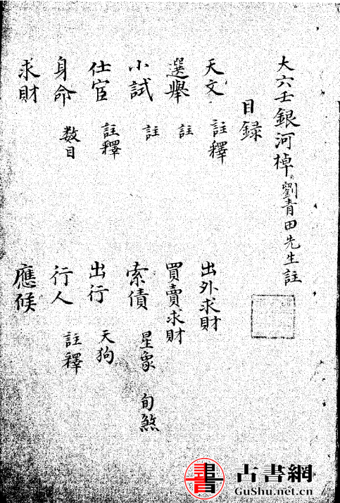 同治元年重镌银 河棹大文堂业兑自序壬遁秘旨,传自武侯所着,迄今二千余年;精其学者,每秘不轻示,而奇门、六壬、太乙三式每多错谬,鲜有真诀秘授。姚少师得此书,藏之内府,正统中土木之变,蓉城孙南华先生于燕营屠曾门室中得之,未有师传也。后从史道邻共窗安庆,始遇异人指授,遂精其学。万分珍重,什袭以藏。每与人谈,少露一斑,奇中如神。余恳求再四,仅以经文授,且曰:“非吝也。实爱道也。君归读之。”余拜而受之,恨不得其解,因静坐一室,探其源于《河图》、《洛书》,稍得其说。复趋蓉城就正,先生笑且怒,笑则喜子之买舟相访也,怒则怒子之泄其机也。谓予曰:“君能苦心原理,可以指示矣。慎勿轻以示人,致于天律。” 叮咛教戒而别。余欲遵其戒,虑世失其传,因手录成帙,使后之君子遇兹编者知可珍重也,并述其传之始末,以为之序。崇祯癸未年仙槎张松源题于云门山屋。