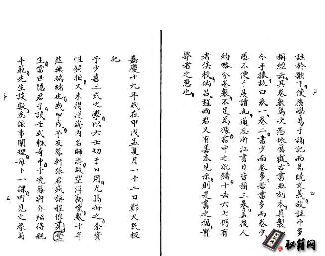 又后附《渡河涉水》等四歌,则是余之管见。按徐君拟经作歌,复以经自注于歌下,使后学易于诵记而易晓文义,故注中多称“经云”。其卷数篇次,悉依旧观。古书无刻本,其制如今手搭,故日卷一、卷二,书少而卷多,若书多而卷不,恐不便于展读也。《通志》、《浙江省书目》皆称三卷,盖后人约略分卷数,不足为据,书中之讹错,十去六七,仍有者俟饺;倘吕程二君又有善本见示,则是书之福,实学者之惠也。