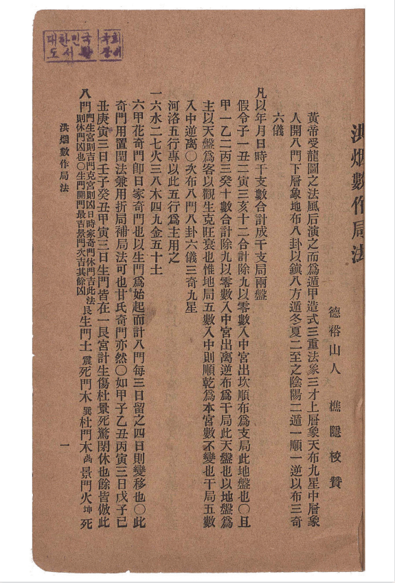 观洪烟奇门著书,皆出自韩国,为甚称为洪烟奇门?盖为洪范与烟波钓叟歌之合称。观此类书,大概为韩国士大夫所做,其中多为年遁奇门,为国事之占多而民事之占少,法术略有涉及,而于军事未尝有论。其中也有二十八宿分野等,总之内容庞杂。