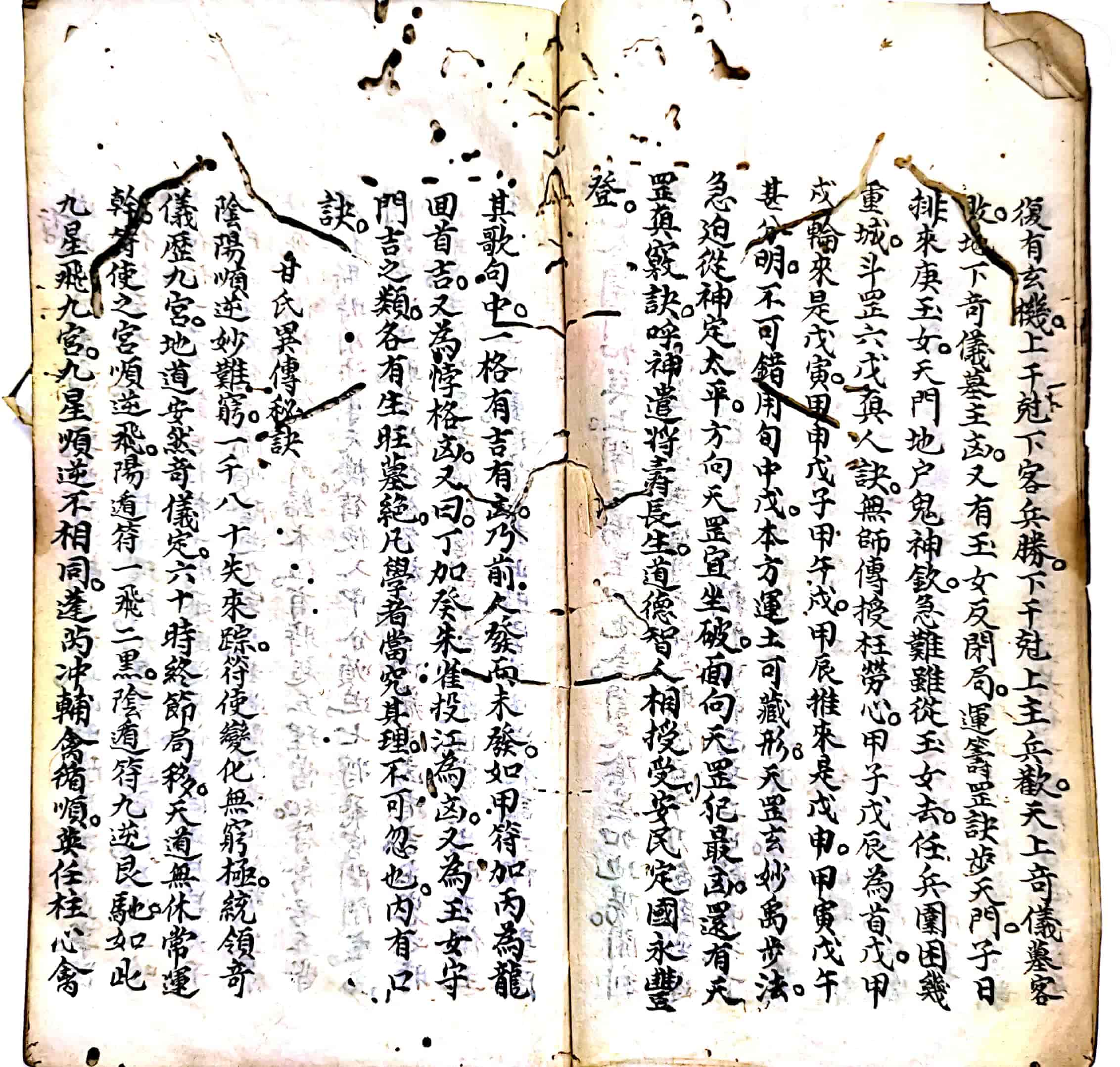 《甘氏汇集奇门一得》手抄本,全本共138个双面,合计276页,末尾几页稍有破损。
