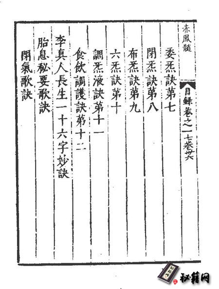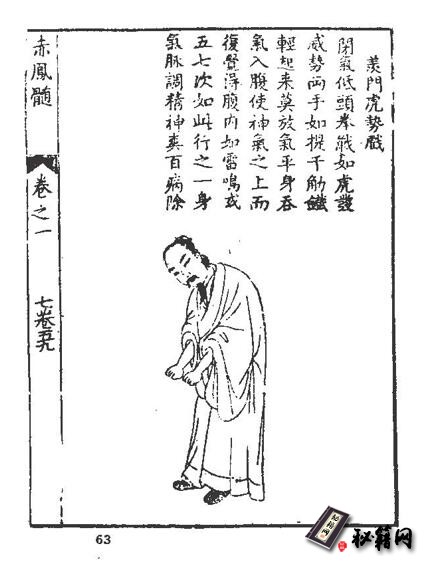 《赤凤髓》为其中主要的一种,《赤凤髓》全书三卷,收Q功动静功法九套,内诸仙导引法,华山十二睡功诀并绘图说明,至今仍可用作参考