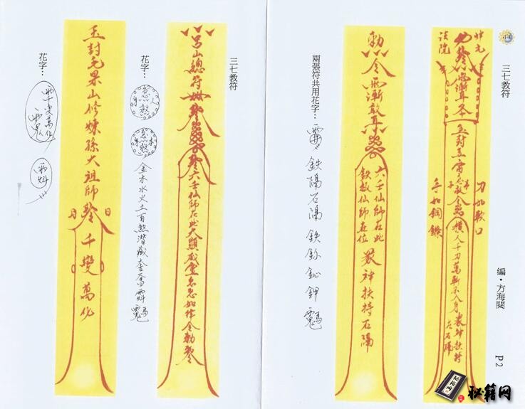 使用方法:书写此三七教二十二张符时,花字膽重叠写,花写膽到结尾时,加上月大或月小之花字月令,而月大或月小则要看农历每月的月令大小而作配合,