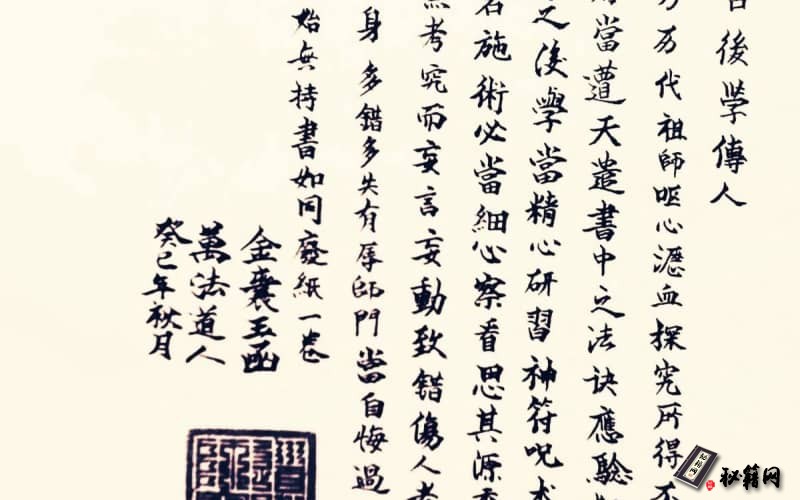 本书乃历代祖师呕心沥血探究所得,不可传于非人,否则 当遭天遣,书中之法诀应验如神,不可轻视之,