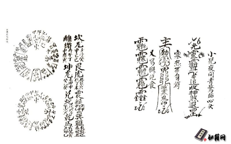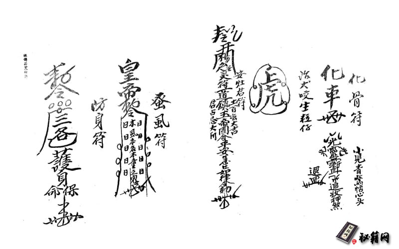 一本民间手抄本的符咒古籍法本,内容包括:治阴病,三煞符安带身俱可用、防身符、治犬咬生粒仔、 化骨符 、治小儿夜啼、杨公隔山符、、、等