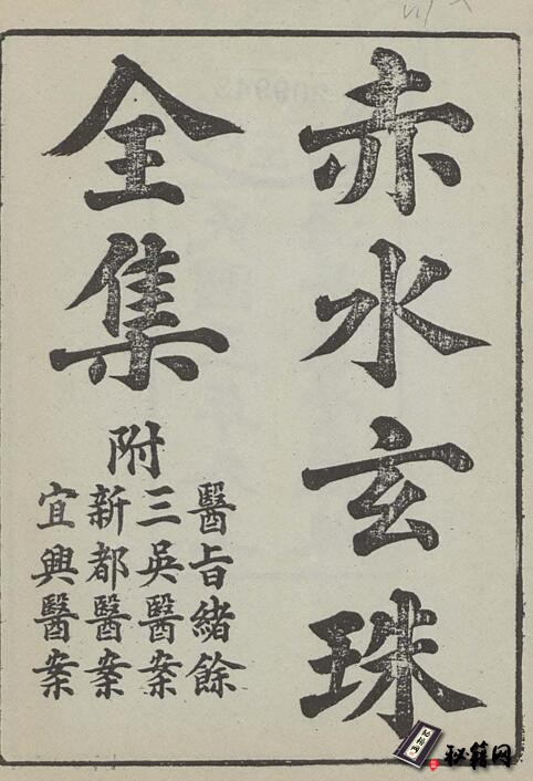 《赤水玄珠》全称《赤水玄珠全集》,又名《孙氏医书三种》,是明代孙一奎撰医书。刊于万历十二年(1584)。现存刻本有明副本、四库全书本、1914年上海著易堂书局铅印本、1986年人民卫生出版社点校本等10多种。