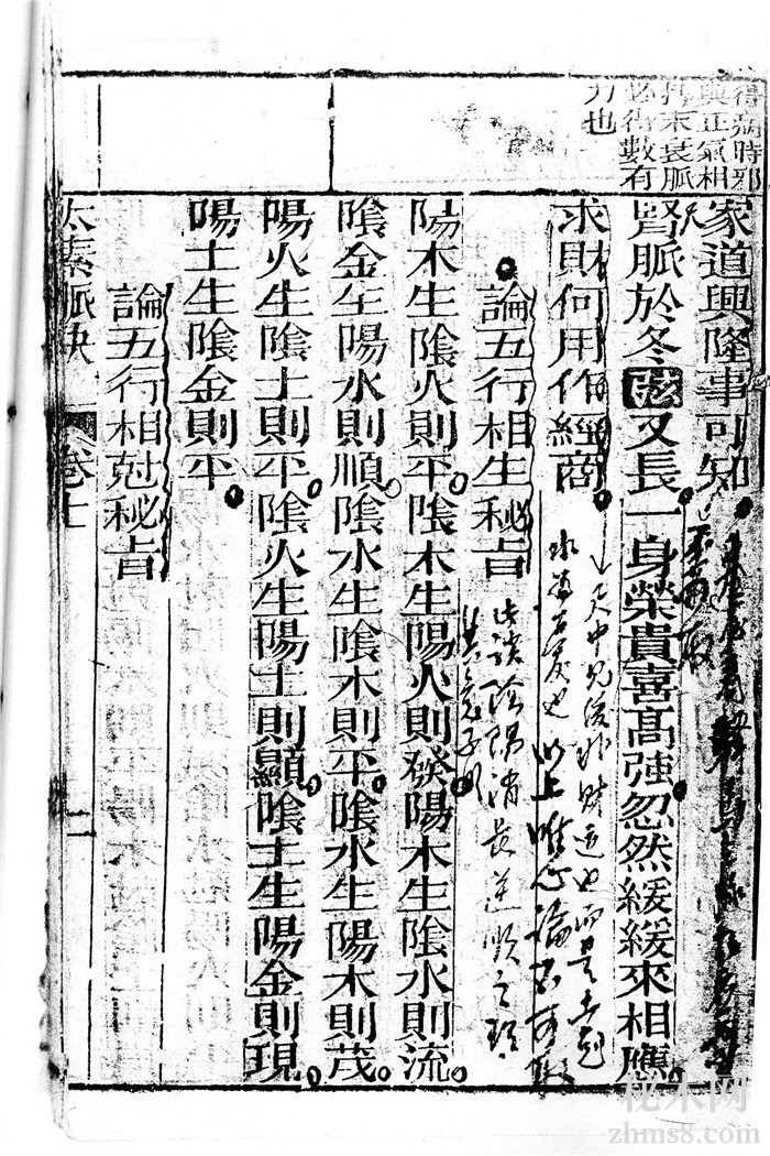 乘火金乘木日纵火,乘水木乘金日横水,乘金火乘木曰逆,金水木乘火日顺,肝心胛肺肾亦日顺,胛脉四季脉,见之宽缓而细者,亦旺相之脉也,诚知阴阳逆顺生克旺相可以知病之来,又知富贵贫贱寿夭学问文章聪明贤愚,先贫后富,先富后贱,富后先贵,徒配刑闪奸巧诡诈,水火婚姻父母生死兄弟离合,同僚迁转,家门昌盛,由此而推万无一失。