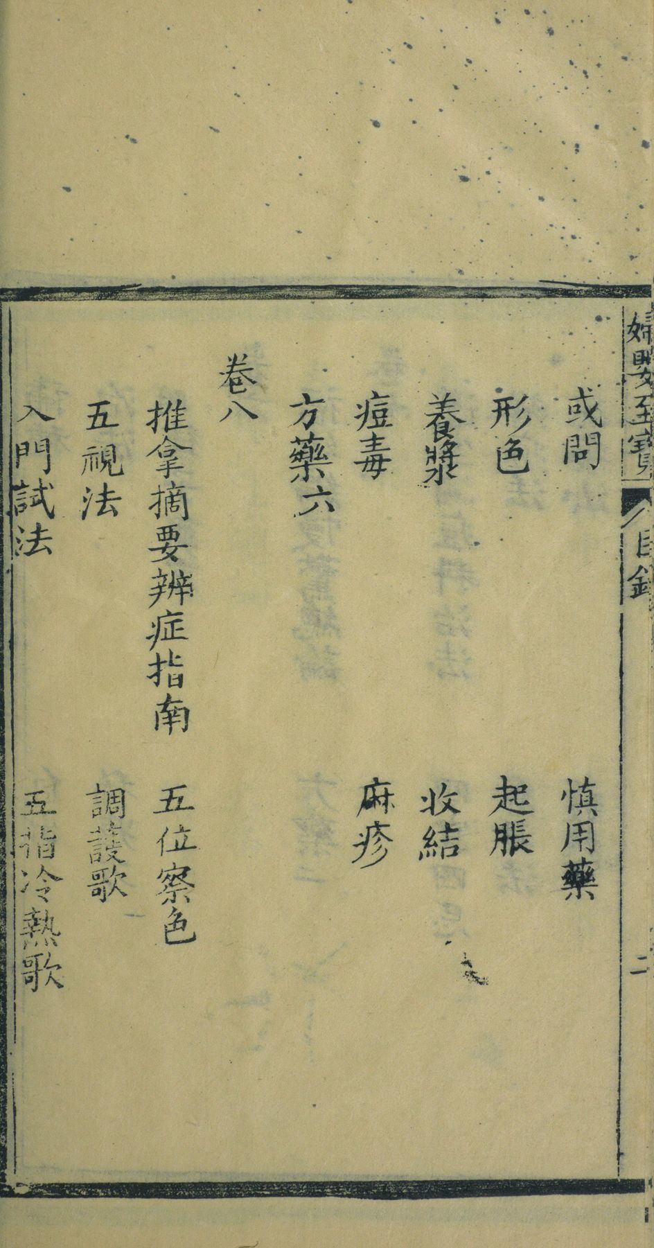 内容简介:卷一至四,达生编,亟斋居士原编,徐尚慧原刊,三农老人附註,拜松居士增订;卷五,种痘法,毓兰居士原辑,拜松居士增订;卷六,福幼编,庄一夔著,拜松居士增订;卷七,遂生编,庄一夔著;卷八,推拿摘要辨症指南,王兆鼇重校;附 : 幼科钱镜各图推法。