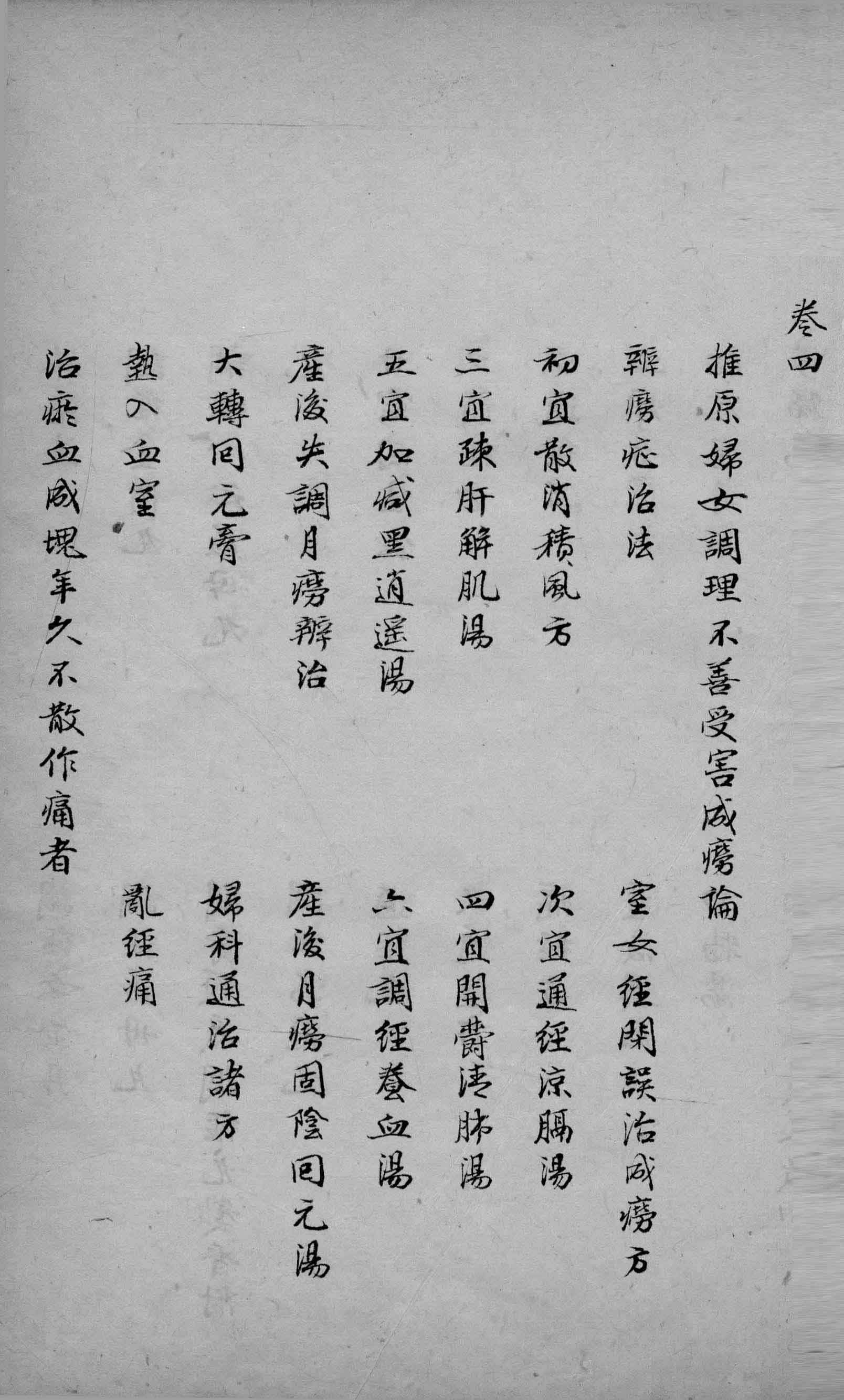 卷1总论男女禀赋、形色、经脉之异别及月经病证治;卷2论保产安胎忌宜;卷3专述产后诸疾;卷4分述妇科杂病。末附妇科通治方70余首。