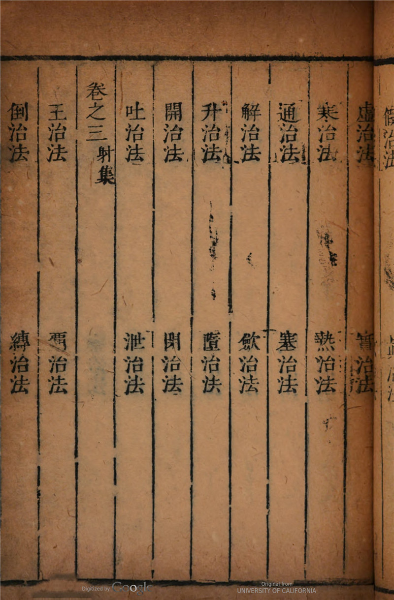 《石室秘录》是中医古籍中唯一一部以治法为主要内容和标目的著作。全书分6卷,依次分为礼、乐、射、御、书、数六集,各集之中以治法为目。其中,礼集中载14种治法,乐集载30种治法,射集中载39种治法,御集中载33种治法,书集中载12种治法和17论,数集中载有7大类疾病(7门)和16种杂病。全书论述总计128法、17论、7门、16杂病,内容闸述了内、外、妇、儿、五官等100种左右疾病的证治,收古今成方及作者自定方500余首,其中大多处方为白裁,是中医古籍中理论联系实际、理法方药俱备的治法专著。