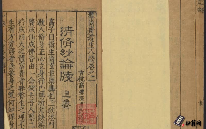 「0471-遵生八笺.十九卷.明.高濂撰.附.菜根谭.二卷.明万历时期雅尚斋刊本」