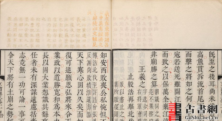 此书《古文渊鉴》64卷是集历代散文为一书的文学总集。由清圣祖选,清徐乾学等编注。选录上起春秋、下迄宋末的文章,包括左传、国语、国策等书及诒、表、书、议、奏、疏、论、序诸体文,共合1324篇。此本为清康熙四十九年(1710)武英殿刻五色(朱、墨、黄、蓝、绿)套印本。