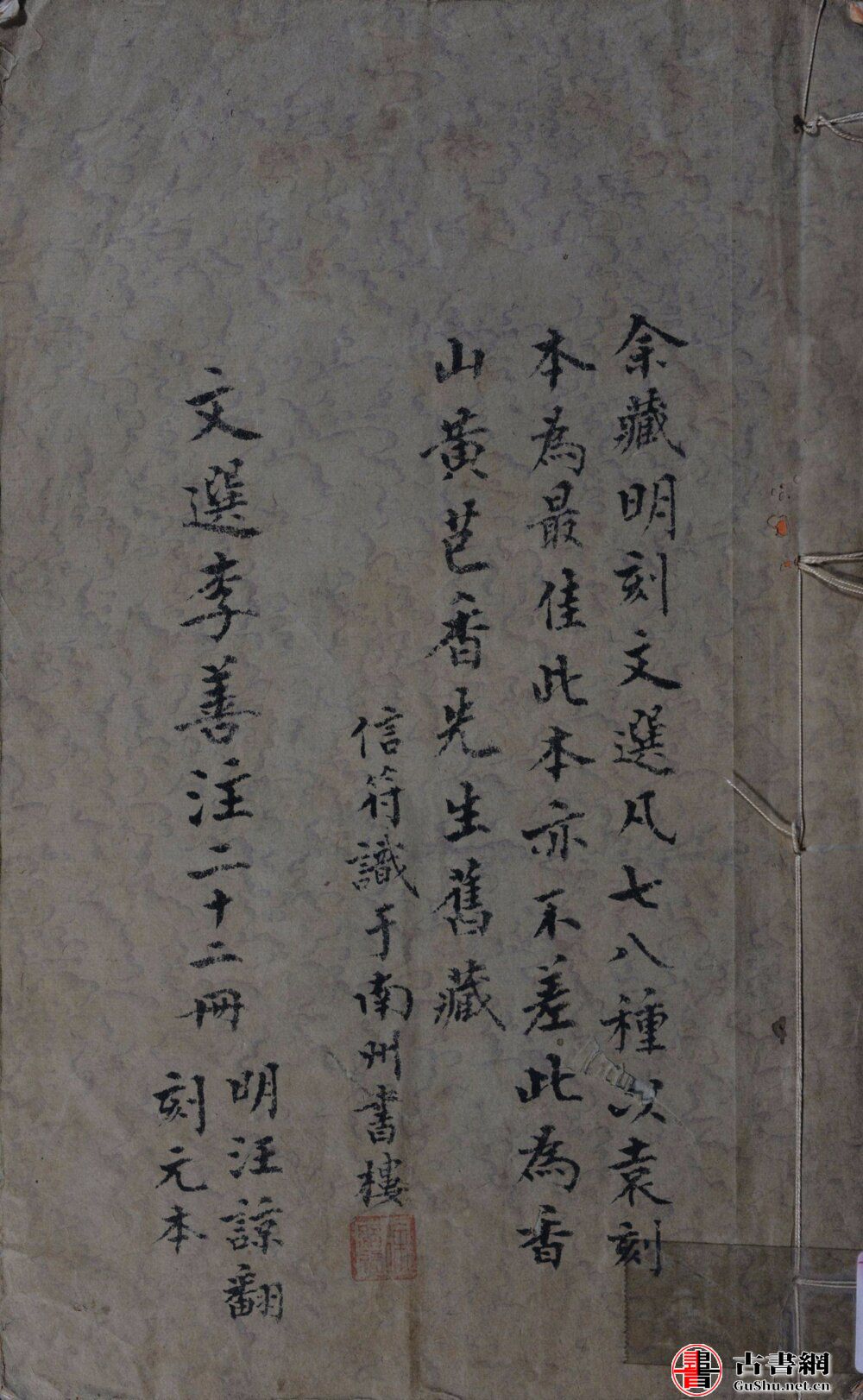 余藏明刻《文選》凡七八種,以袁刻本為最佳,此本亦不差。此為香山黃芑香先生舊藏、明汪諒翻刻元本。