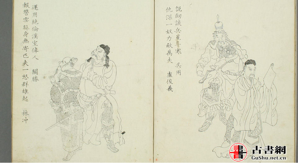 此本《天罡地煞图》主要是清代画家陆谦根据《水浒传》一百单八将:上位天罡星36星,下位地煞星72星来排定人物座次,所设定的白描人物画。此本应为日本1835年的摹描本。