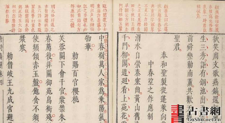 此《李于麟唐诗广选》共七卷,李攀龙选编(凌瑞森,南荣集评)。分为五言古、七言古,五言律、七言律,五言排律,五言绝句、七言绝句。集评取宋至明欧阳修、王安石、苏轼、黄庭坚、李东阳、王世贞等诸多名家所评唐诗。此本为明万历时期凌氏朱墨套印本。