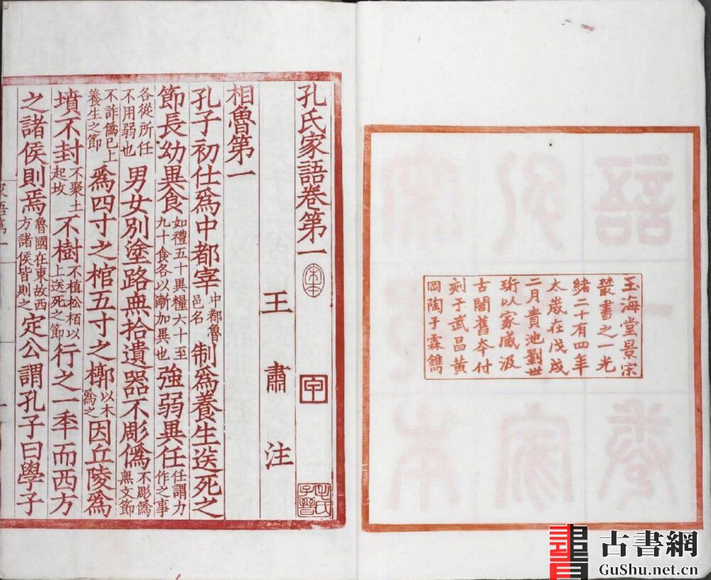 古籍.孔子家语. 魏. 王肃注. 十卷【标清(明隆刊本、清光绪景宋蜀刊墨印本)+普清(清光绪景宋蜀刊朱印本)】