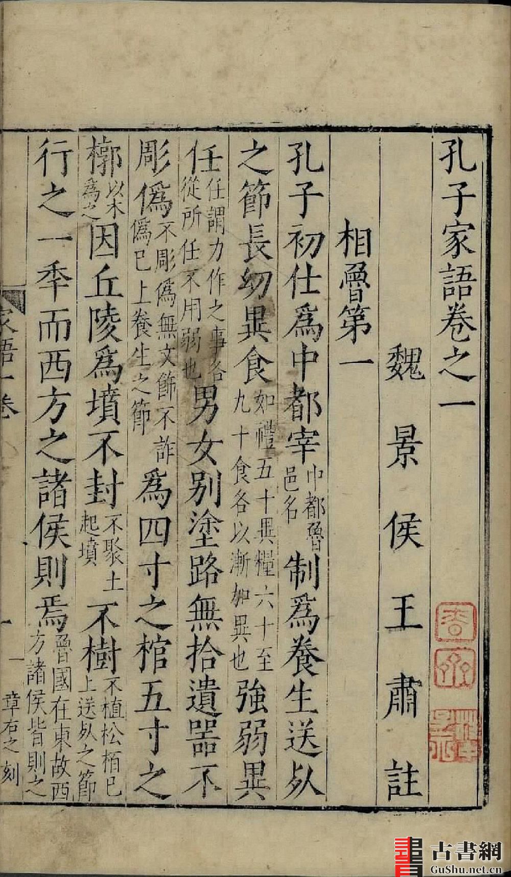 孔子家语. 魏. 王肃注. 十卷
