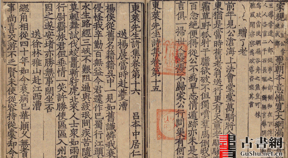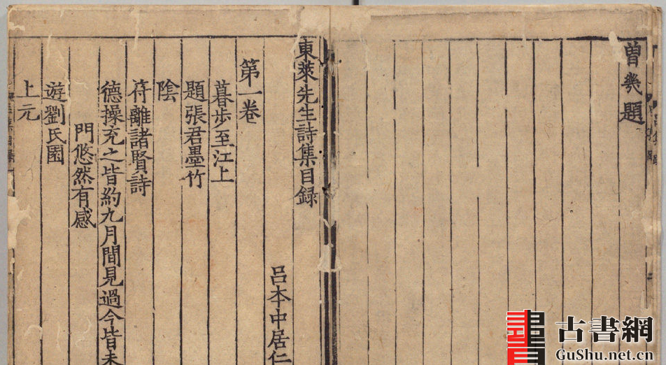 书名:东莱先生诗集.20卷.缺卷7.8.吕本中著.南宋乾道初.沈公雅编刻.1165年