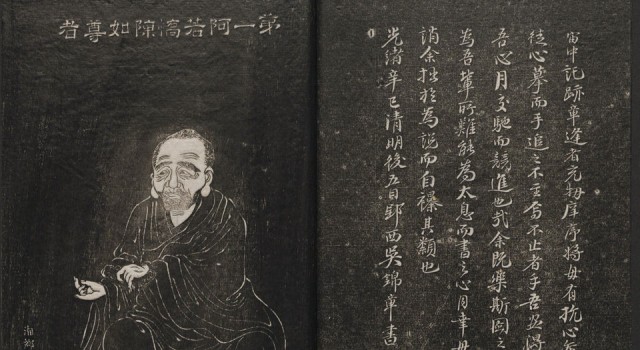 湖南衡阳祝圣寺罗汉堂原有五百罗汉雕像,全部用青石镌刻,嵌在左右墙壁上,是南岳文化宝库中的一颗明珠。可惜在十年动乱中,罗汉大部分被毁,现仅存五百罗汉像拓本。此本为清末拓本。