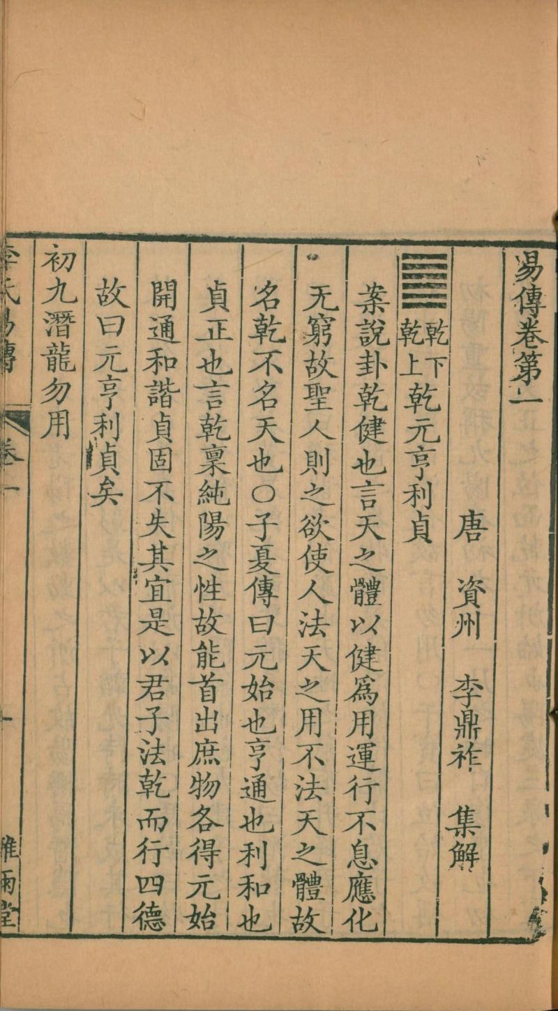 清代汉学复兴,《周易集解》成为学者们了解汉代《易》学的桥梁,所以刊刻研究该书者比比皆是。清乾隆二十一年(1756)德州卢见曾刊《雅雨堂丛书》,刻入《易传》十七卷。此为日本国立国会图书馆藏本。
