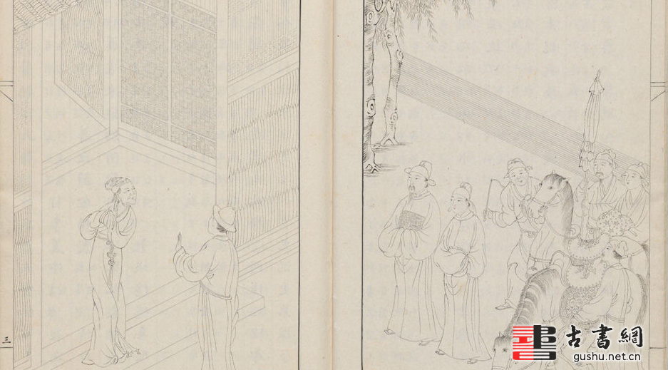 《投桃記》二卷,明汪廷訥撰,描繪得美妙至極。環翠堂是汪廷衲的堂名,汪家刻書中的版畫完全是徽州一派,線條細若髮絲,衣紋折迭、花飾圖桉以及人物造型。此本為民國時期王立承精鈔本。
