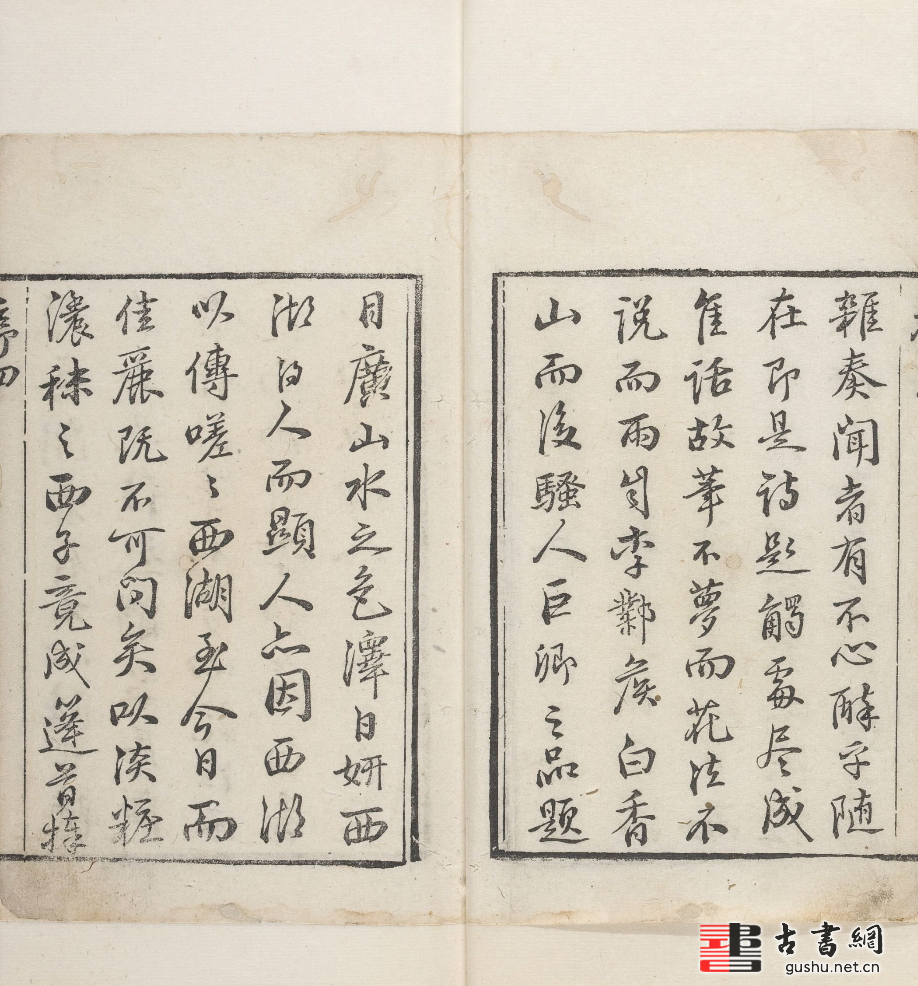 书前有序,书后有跋文。首页为全景图,后依次为:苏堤春晓、曲苑风荷、柳浪闻莺、花港观鱼、南屏晚钟、平湖秋月、两峰插云、三潭印月、雷峰夕照、断桥残雪。