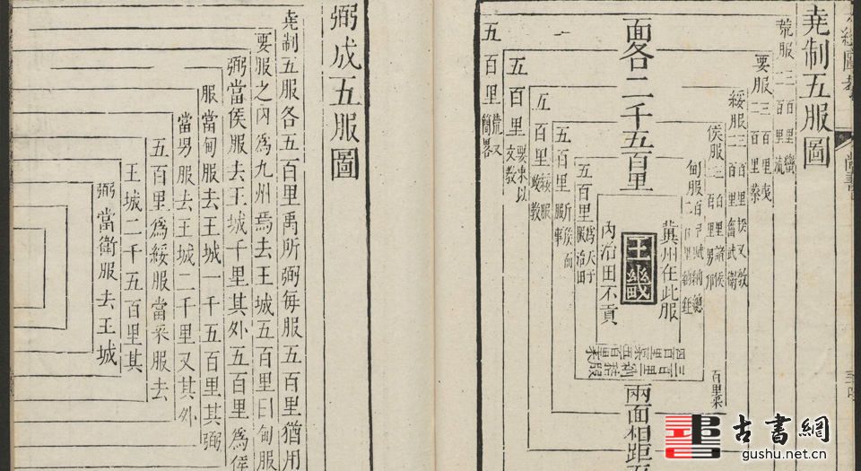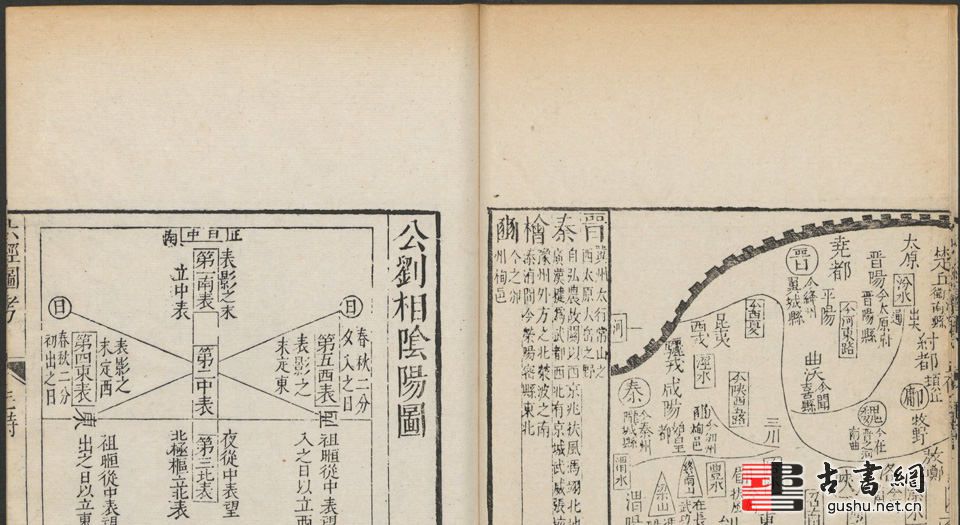 《六经图考》共六卷,宋杨甲撰,毛邦翰补正。将《诗》、《书》、《易》、《周礼》、《仪礼》、《春秋》中有关地理,绘制成图,在地图学中扬名于世界。此书载图三百二十二,大致为清康熙六十一年(1722)潘宷鼎重订礼耕堂刊本。