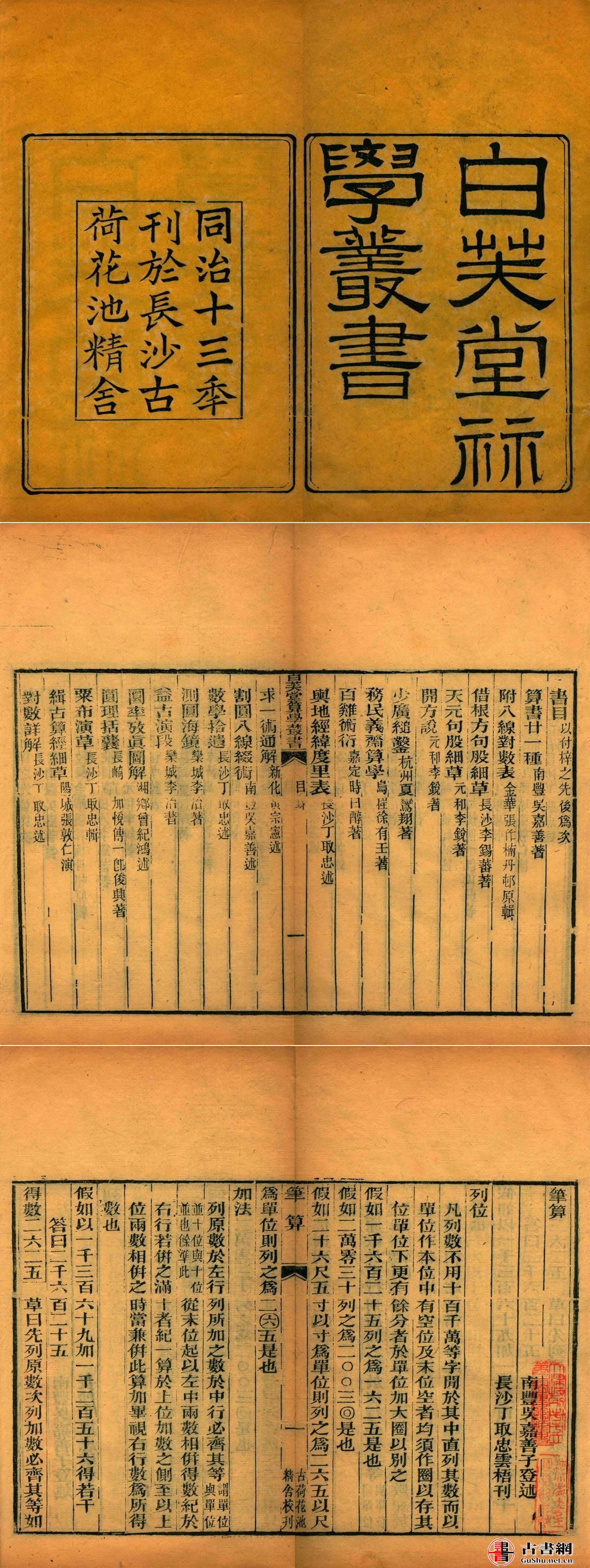 古籍.白芙堂算学丛书. 四十八种. 八十九卷. 清. 丁取忠撰. 清同治光绪时期长沙古荷花池精舍刊本丨天津图书馆藏