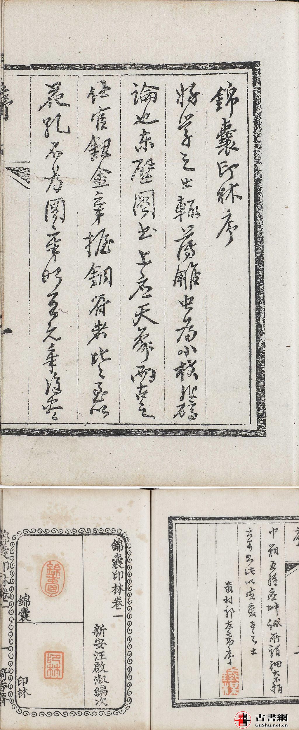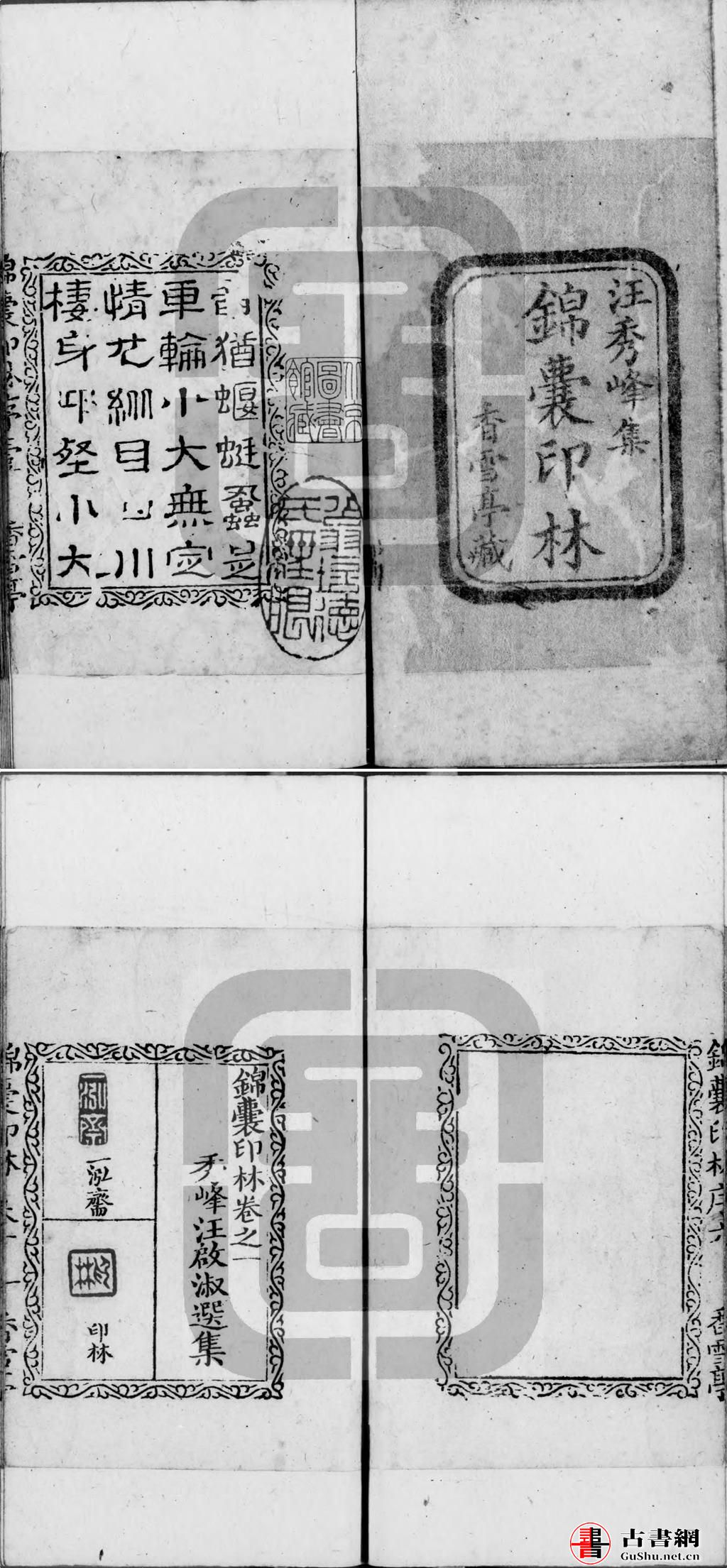 锦囊印林. 四卷. 清. 汪启淑辑. 清乾隆十九年汪氏香雪亭钤印本. 灰度胶片丨中国国家图书馆藏(有水印)锦囊印林. 四卷. 清. 汪启淑辑. 清代绮香斋钤本丨京都大学东方文化研究所藏